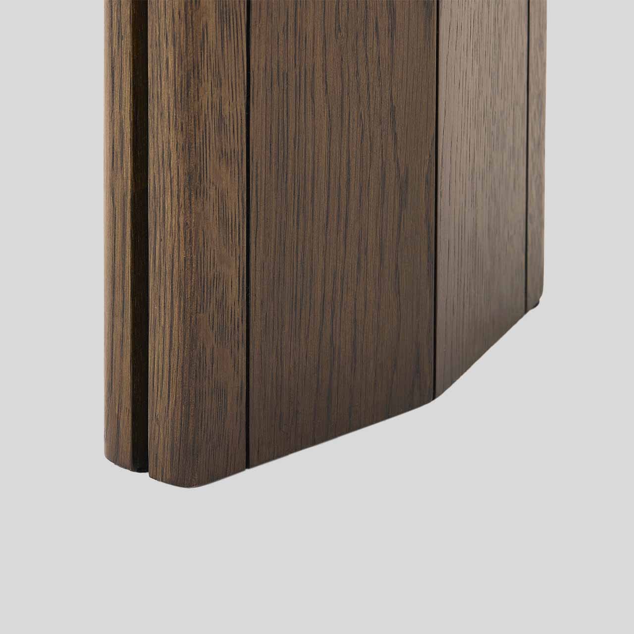 Fabricado en madera de roble enchapada, ofrece un lugar práctico para almacenar y exhibir, sin perder el toque cálido y natural que distingue a toda la colección Nattu.