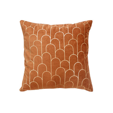 COJIN ART DECO 50X50CM FELPA ALGODON COGNAC/DORADO