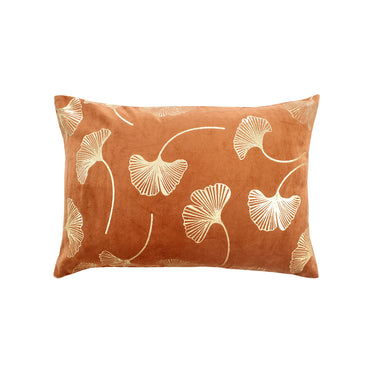 COJIN GINKO 60X40CM FELPA DE ALGODON COGNAC/DORADO