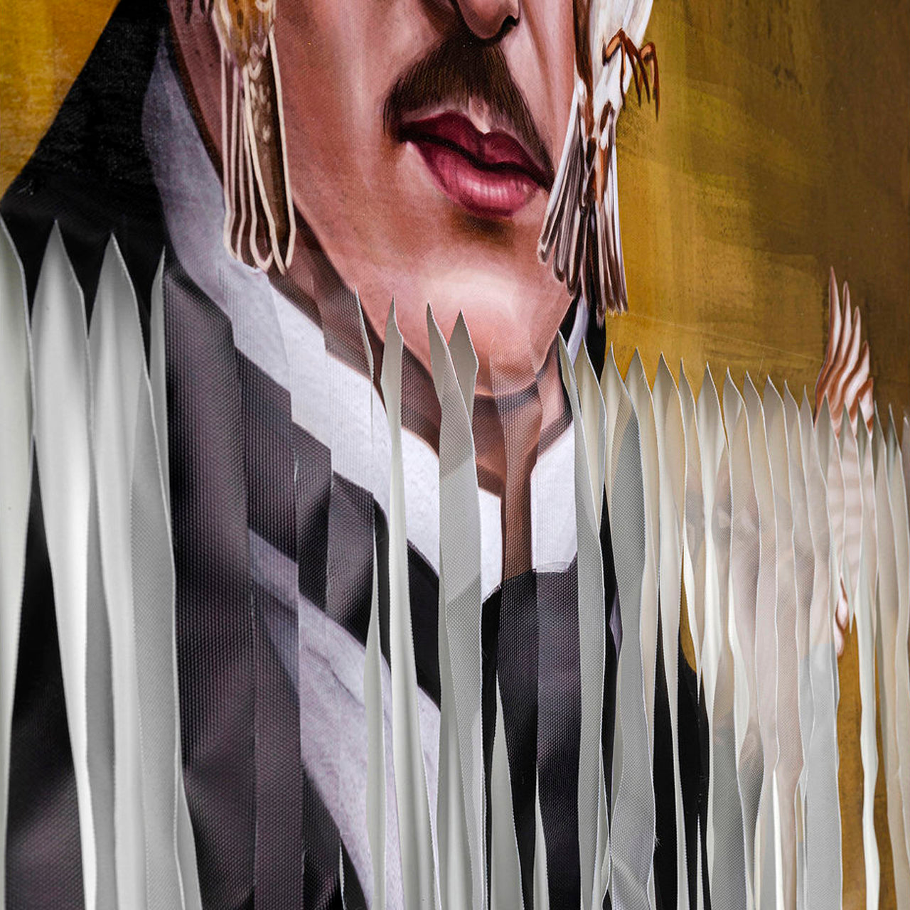 Material Imagen impresa en: algodón (lienzo), panel posterior: tablero de fibra de densidad media (mdf) lacado, marco: poliestireno. peso: 8,3kg