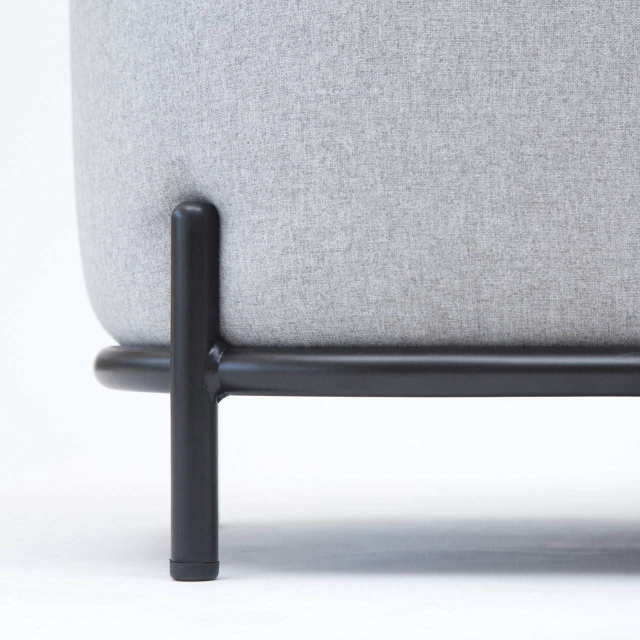 Material Base de acero pintado, estructura de madera sólida de álamo y pino, espuma de alta densidad tapizada.Terminación: tapiz gris claro – base negro mate.