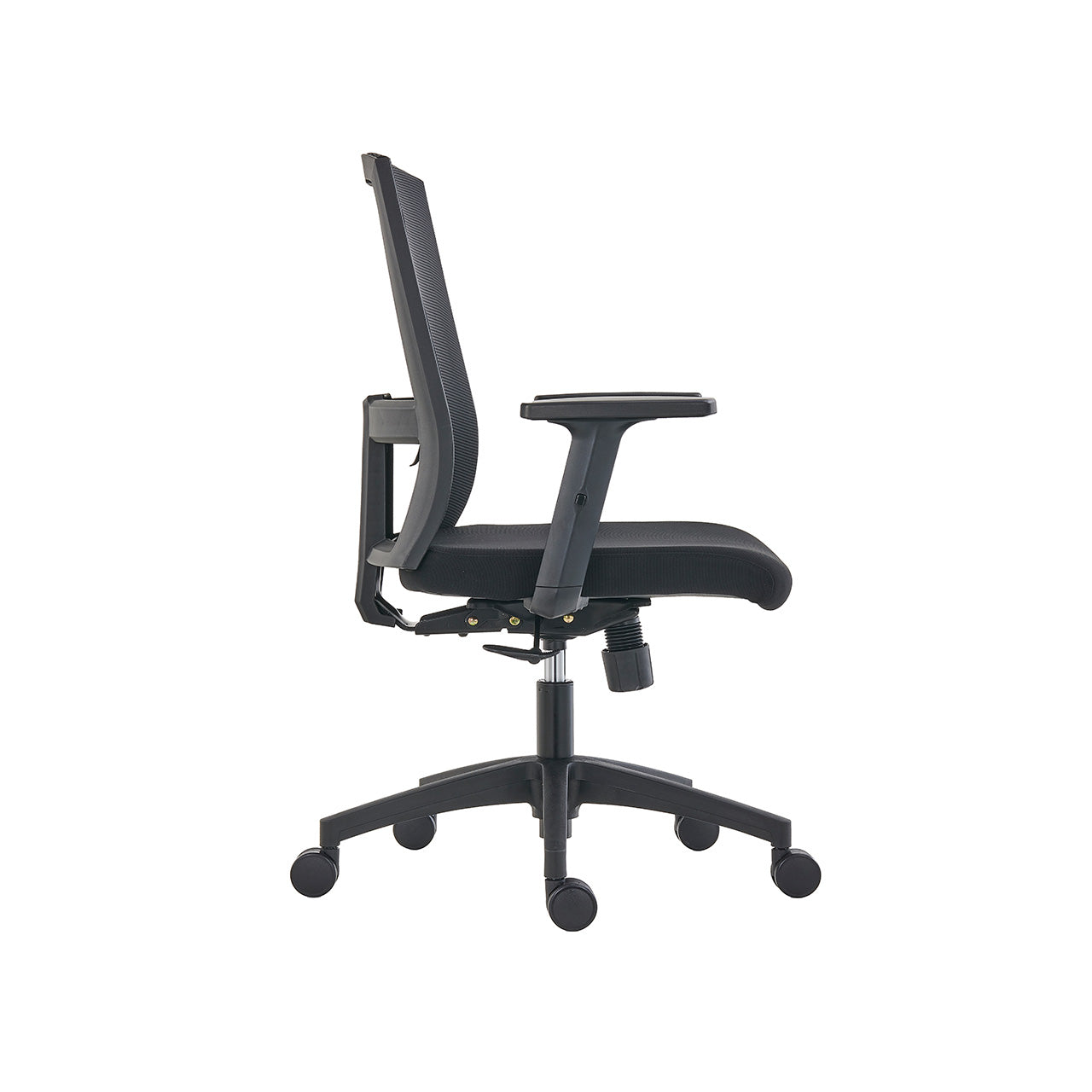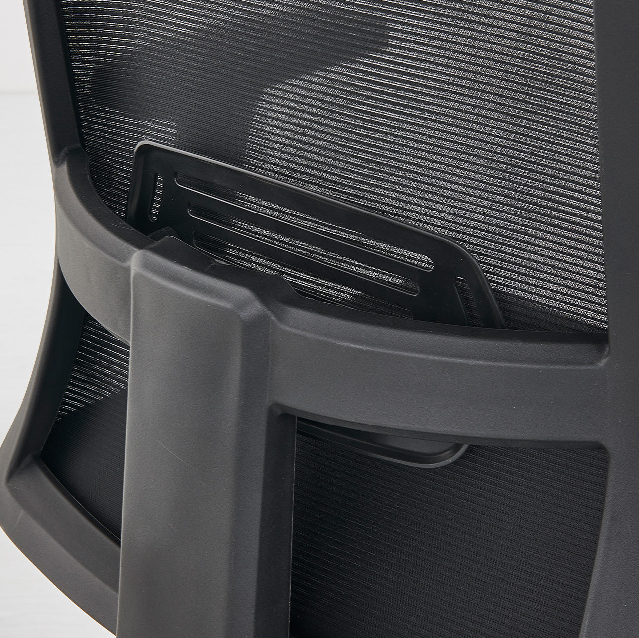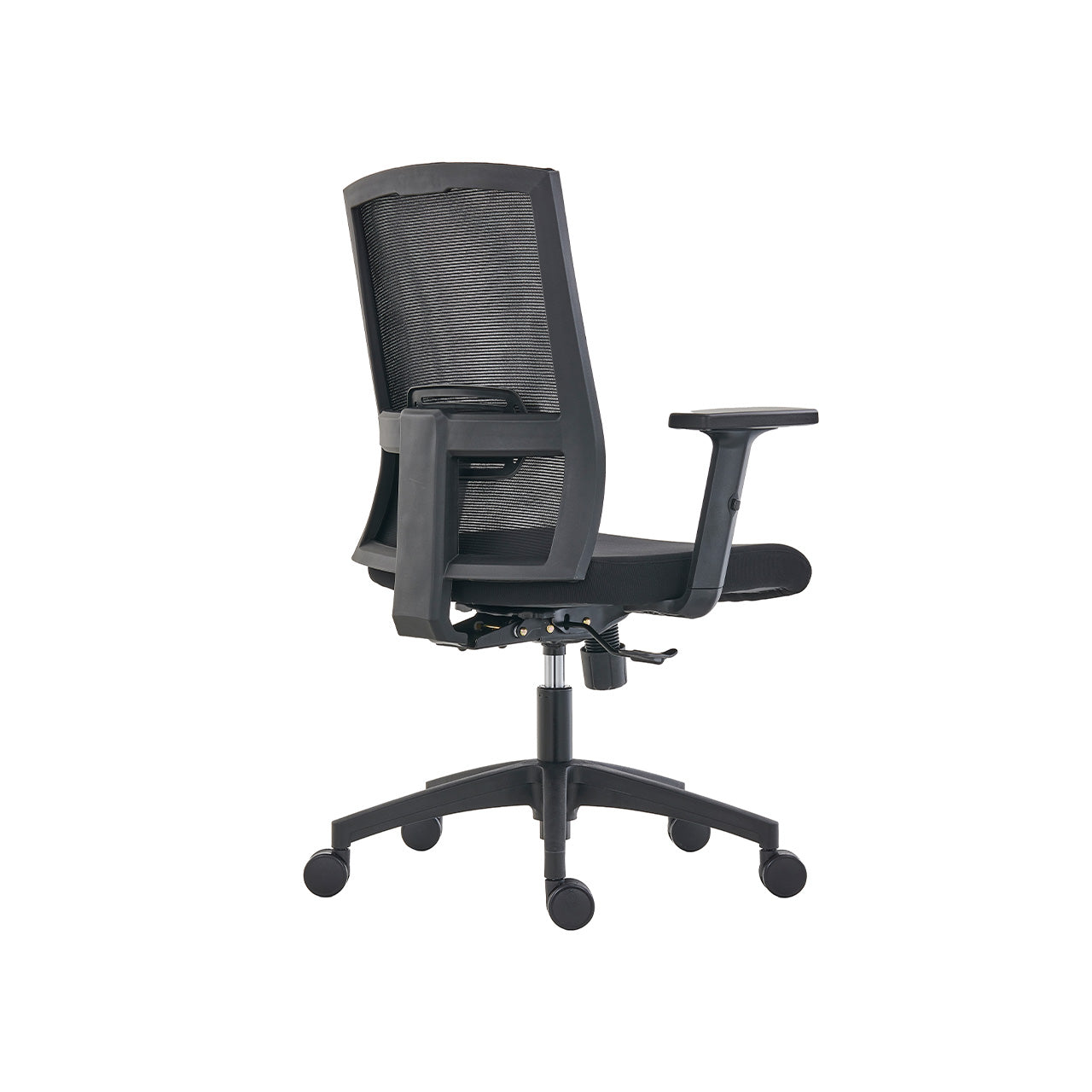 Silla ejecutiva con respaldo malla doble. Cuenta con espuma de molde de alta densidad con tela, apoyabrazos ajustables en altura con almohadilla de PU. Tiene un mecanismo de inclinación sincronizada con bloqueo hacia atrás en 1 posición con altura y tensión de inclinación ajustable. BIFMA ESTÁNDAR, Gaslift clase 3 con distancia de 100 mm, base de nylon BIFMA STANDARD de 320 mm con rueda nylon de 60 mm.