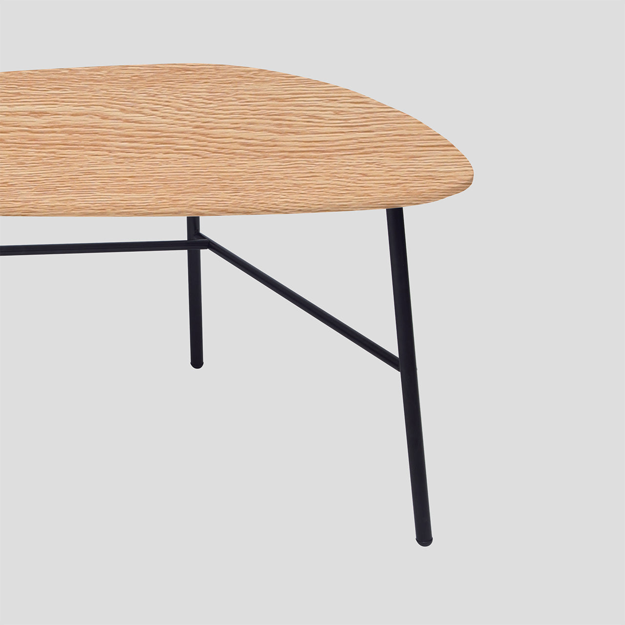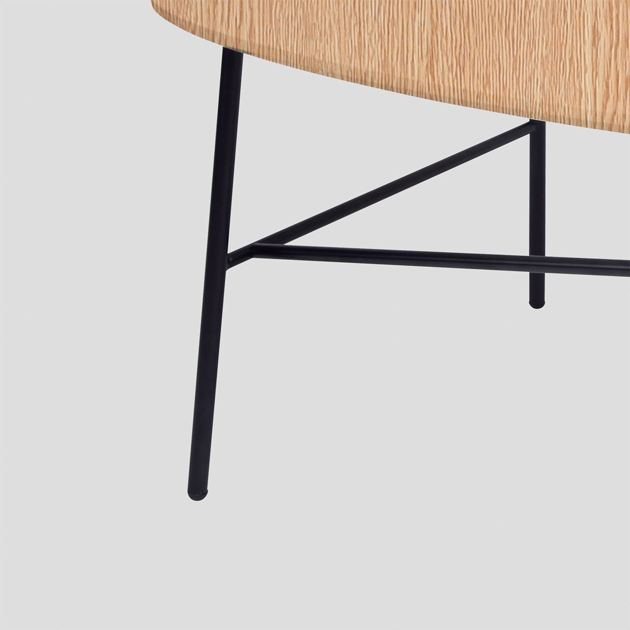 Material Base metálica lacada, cubierta de MDF enchapada en madera barnizada.