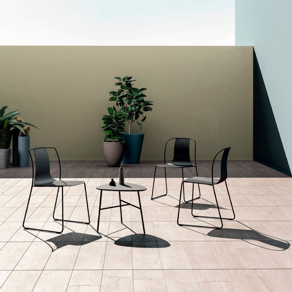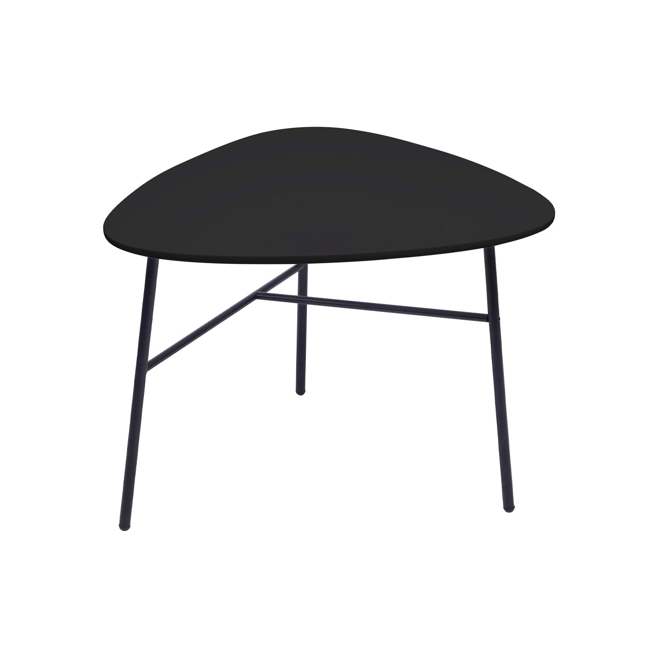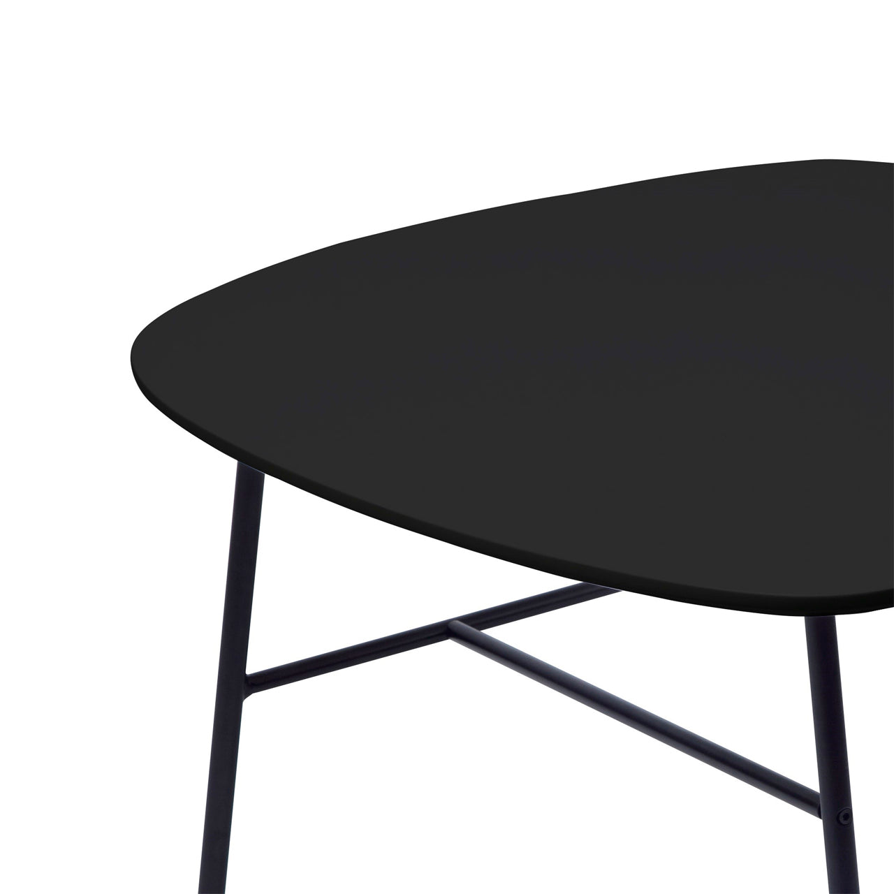 Material Estructura de varilla acero lacado negro mate, cubierta de MDF enchapada en hpl de alta densidad acabado negro.