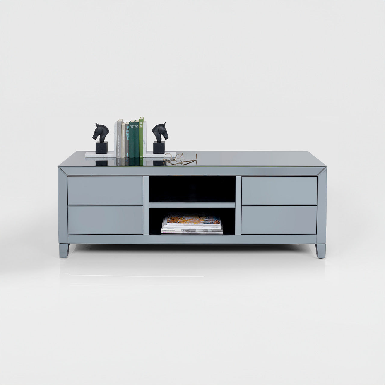 Material Estructura: tablero de fibra densidad media lacado, Pared trasera: tablero de fibra densidad media lacado, Pie/Pies: abeto madera maciza lacado, Revestimiento: vidrio tintado, Parte inferior: montado fijo, 50 kg capacidad de carga máxima.