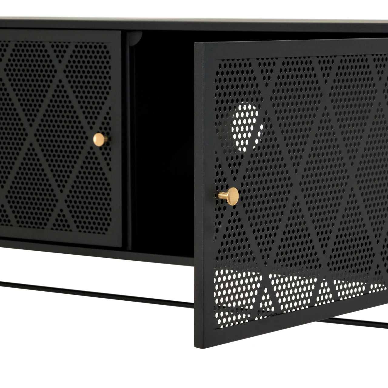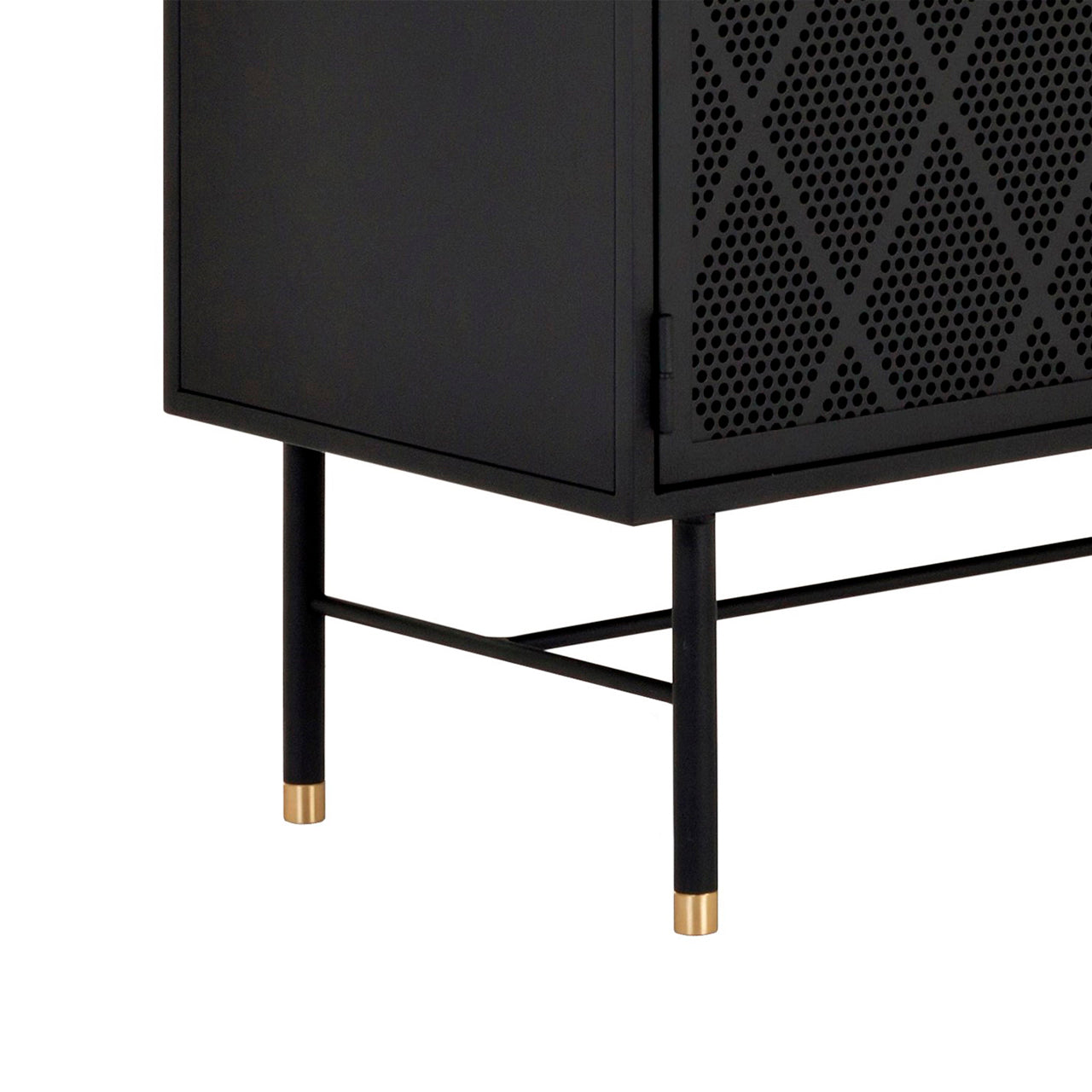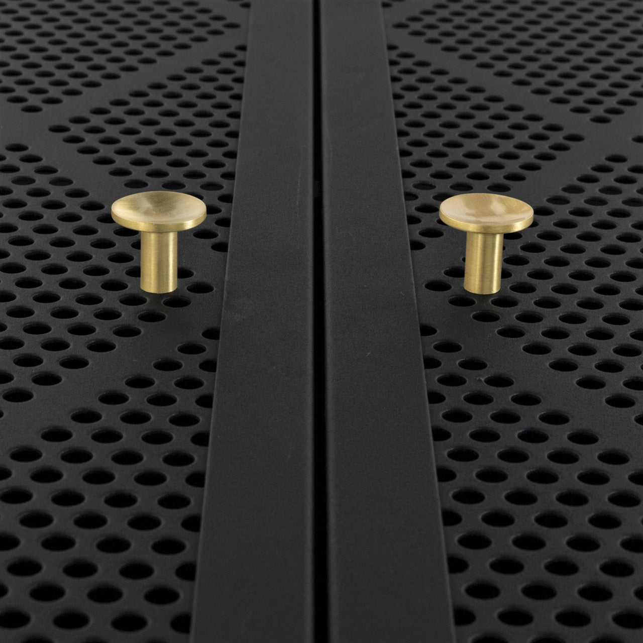 Material Estructura de plancha metálica lacada, patas de tubo metálico lacado, tiradores y toperoles de patas en latón (aleación de cobre y zinc).