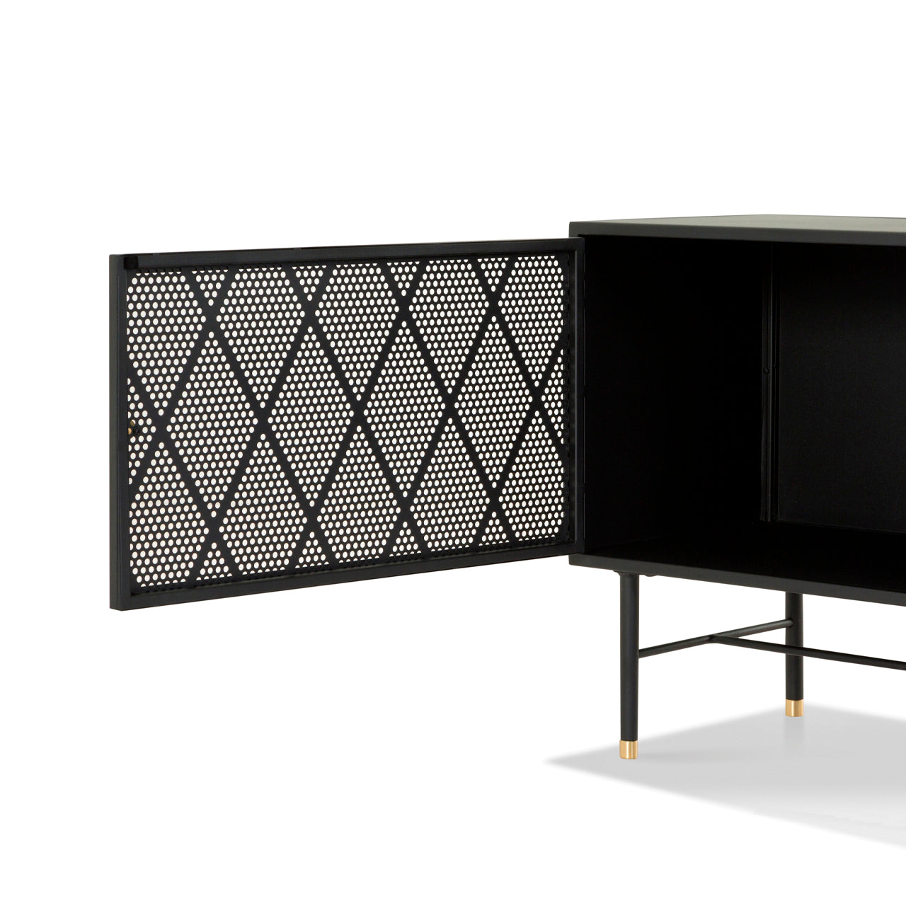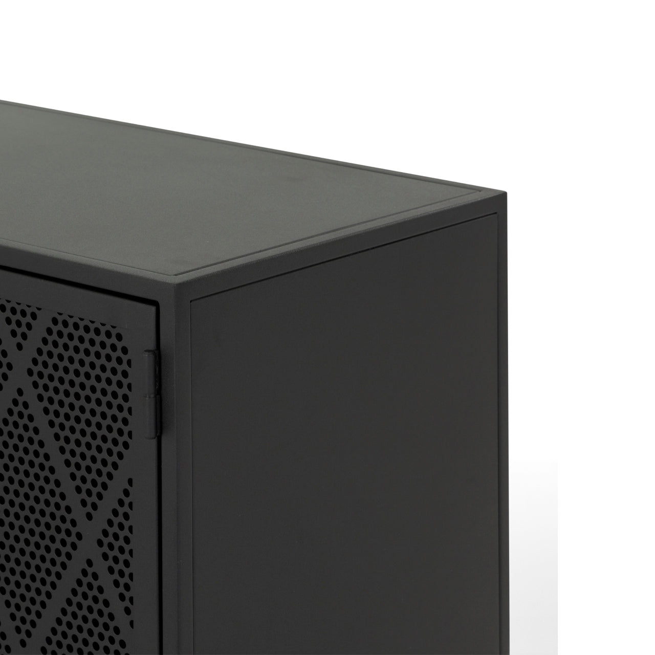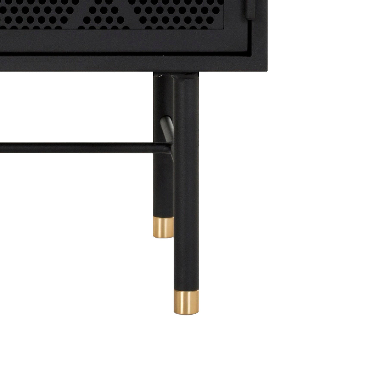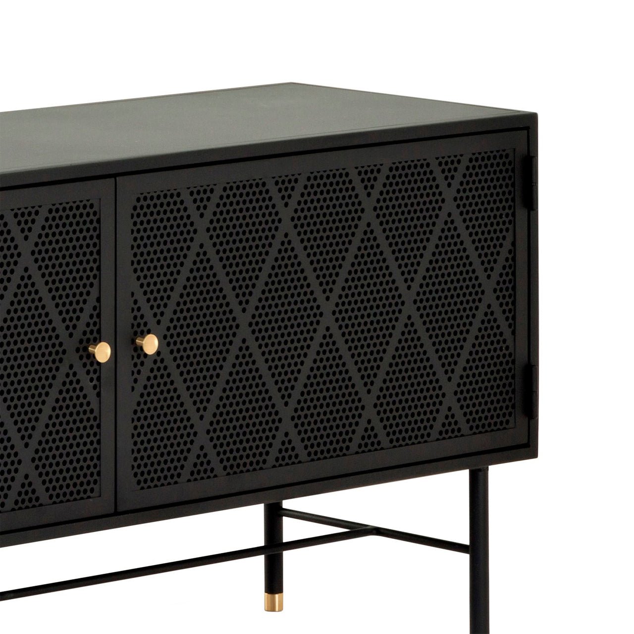 Material Estructura de plancha metálica lacada, patas de tubo metálico lacado, tiradores y toperoles de patas en latón (aleación de cobre y zinc).