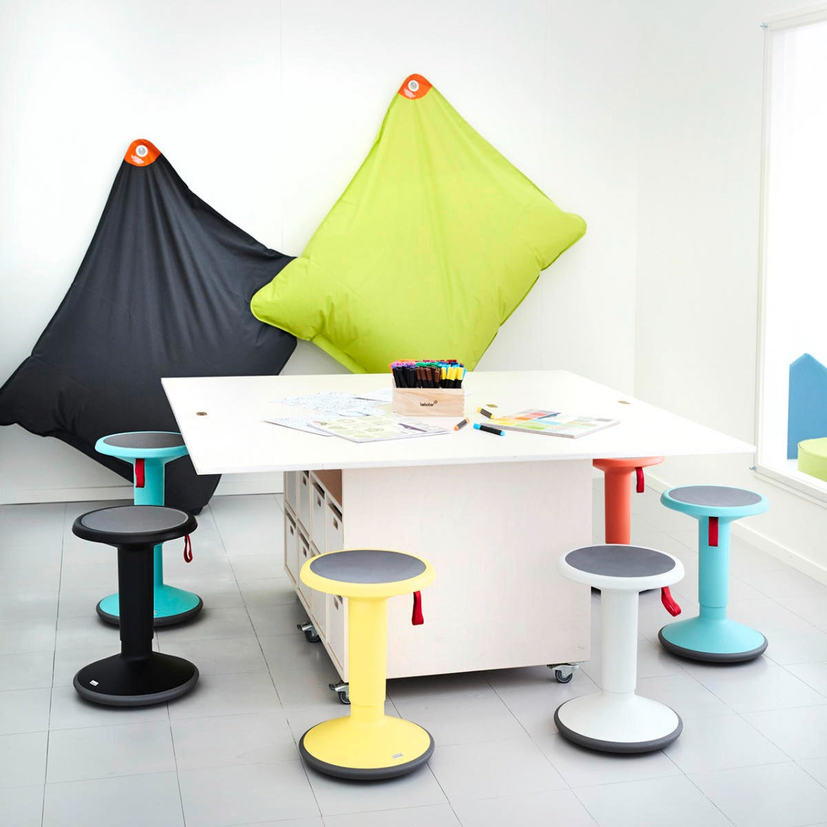 Material Taburete construido en polipropileno, con asiento en polipropileno blando.