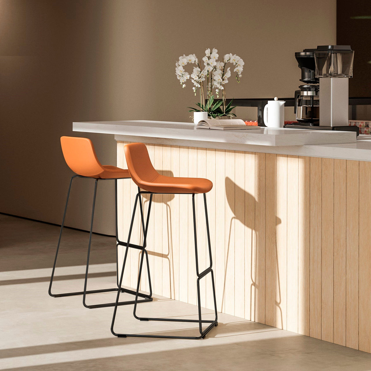 Material Estructura metálica lacada, asiento de polipropileno tapizado sintético.