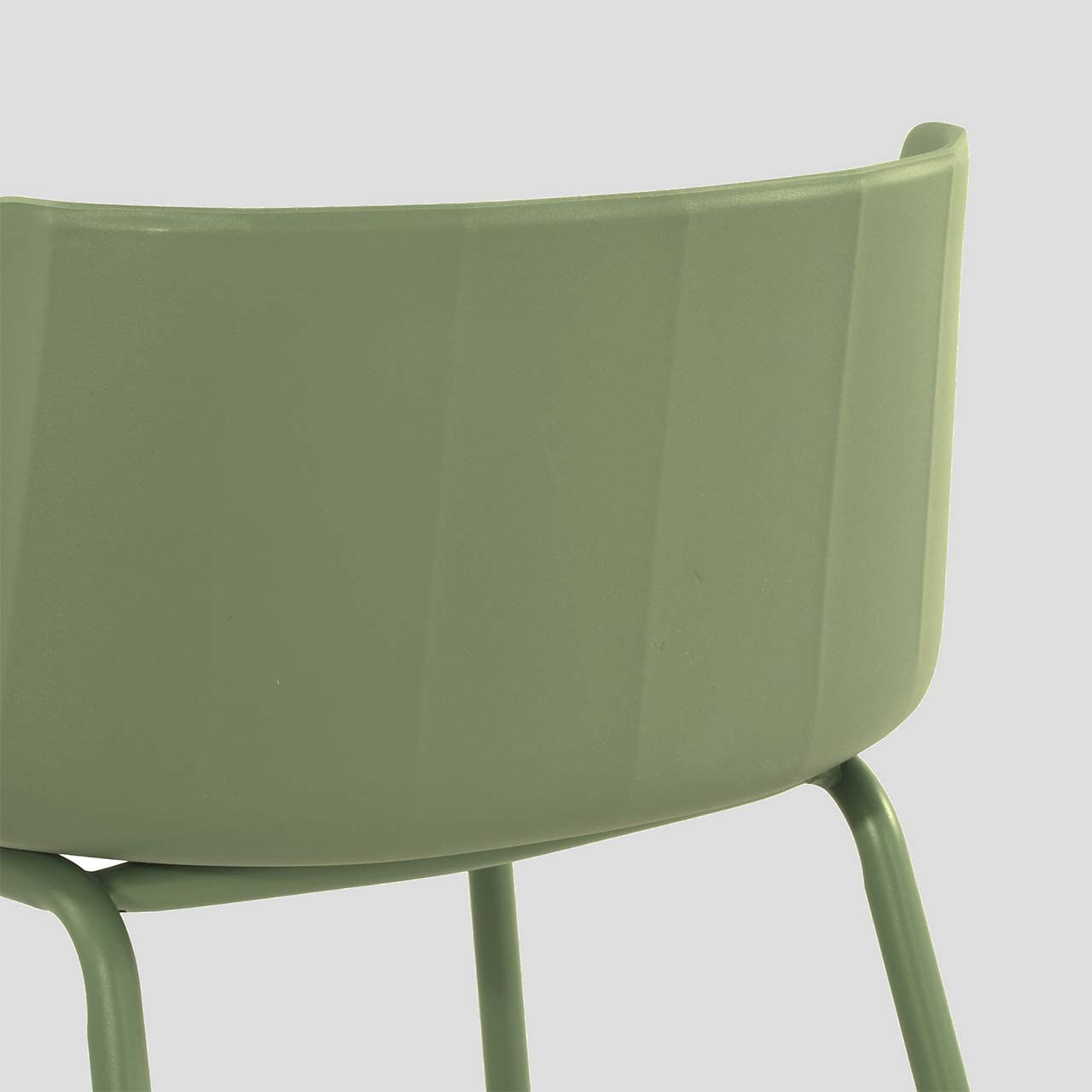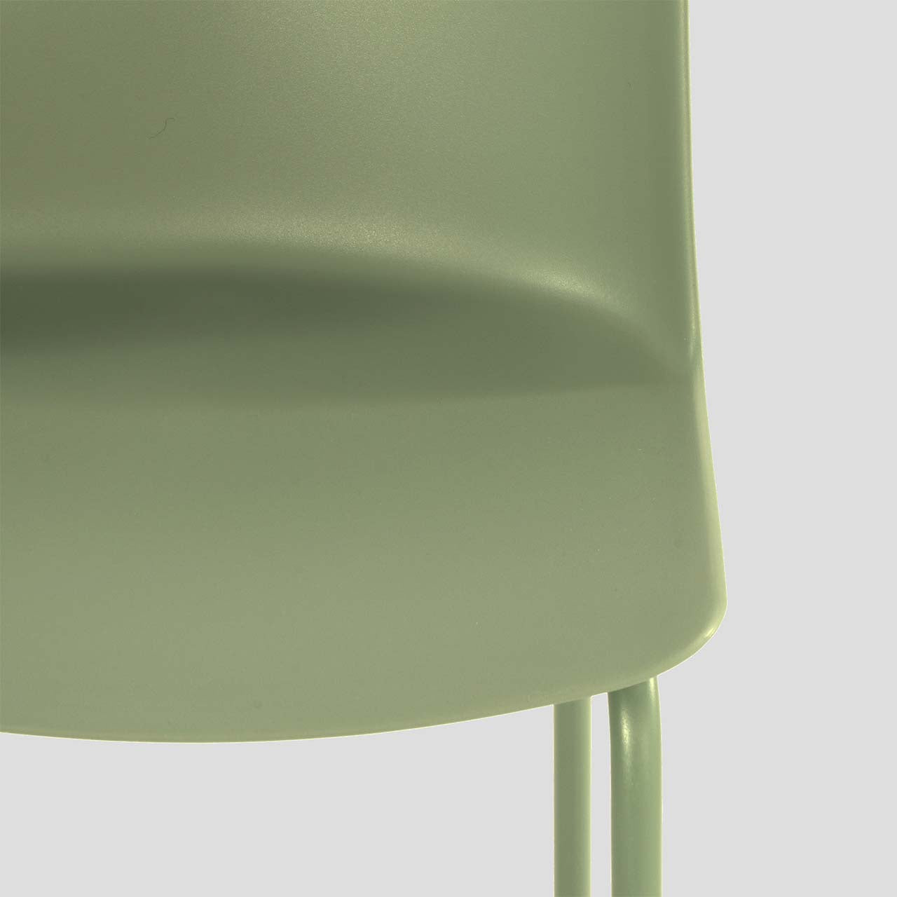 Material Estructura metálica lacada, asiento y respaldo de polipropileno inyectado.