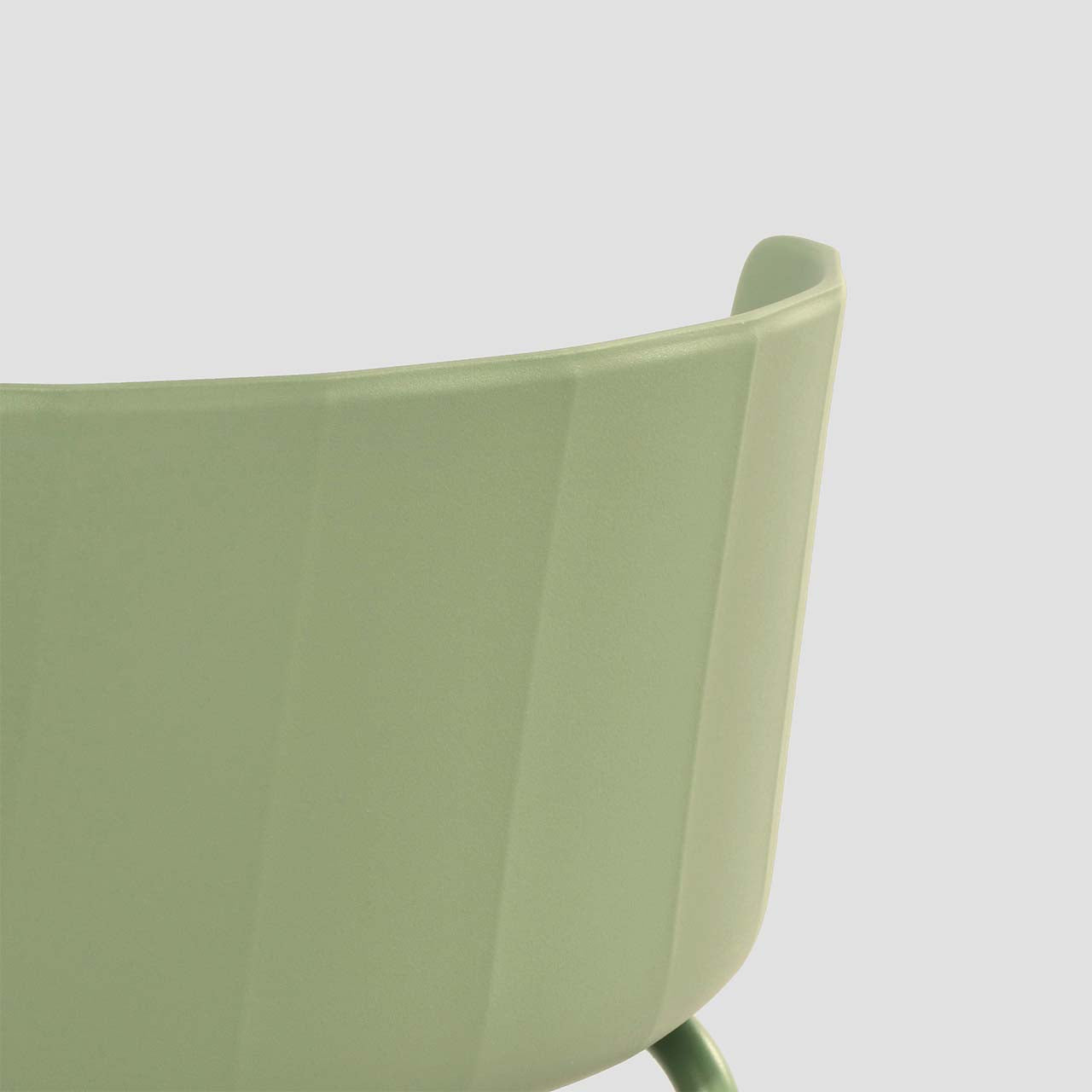 Material Estructura metálica lacada, asiento y respaldo de polipropileno inyectado.