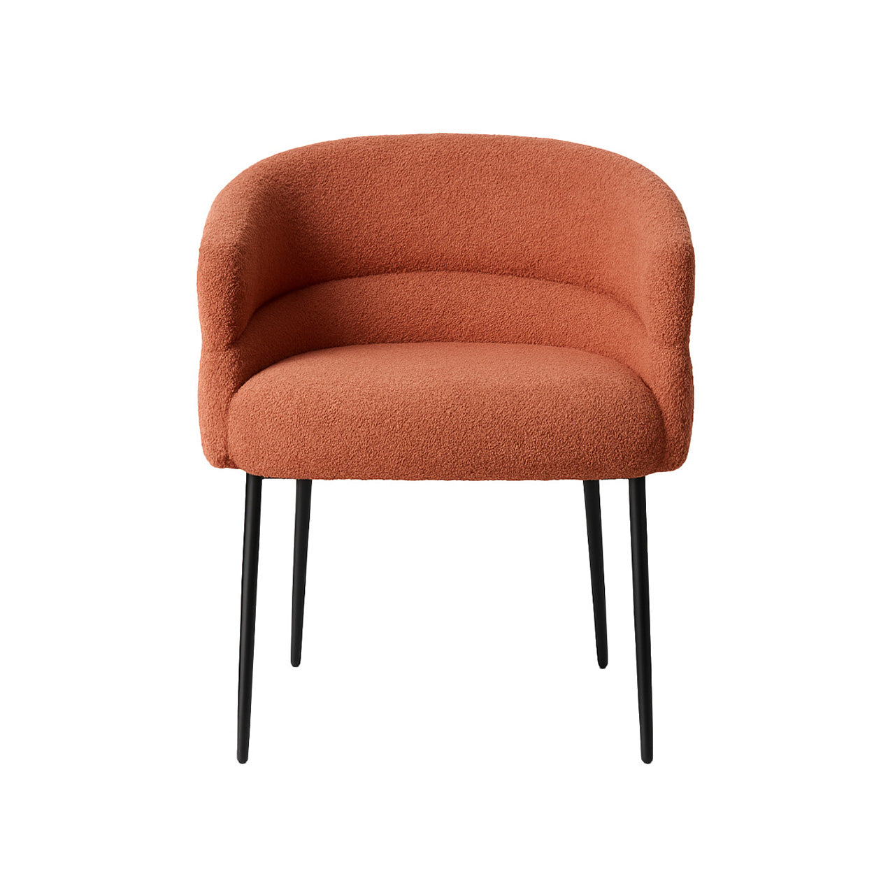Material Patas metálicas lacadas, asiento y respaldo de espuma tapizado en tela mini boucle.