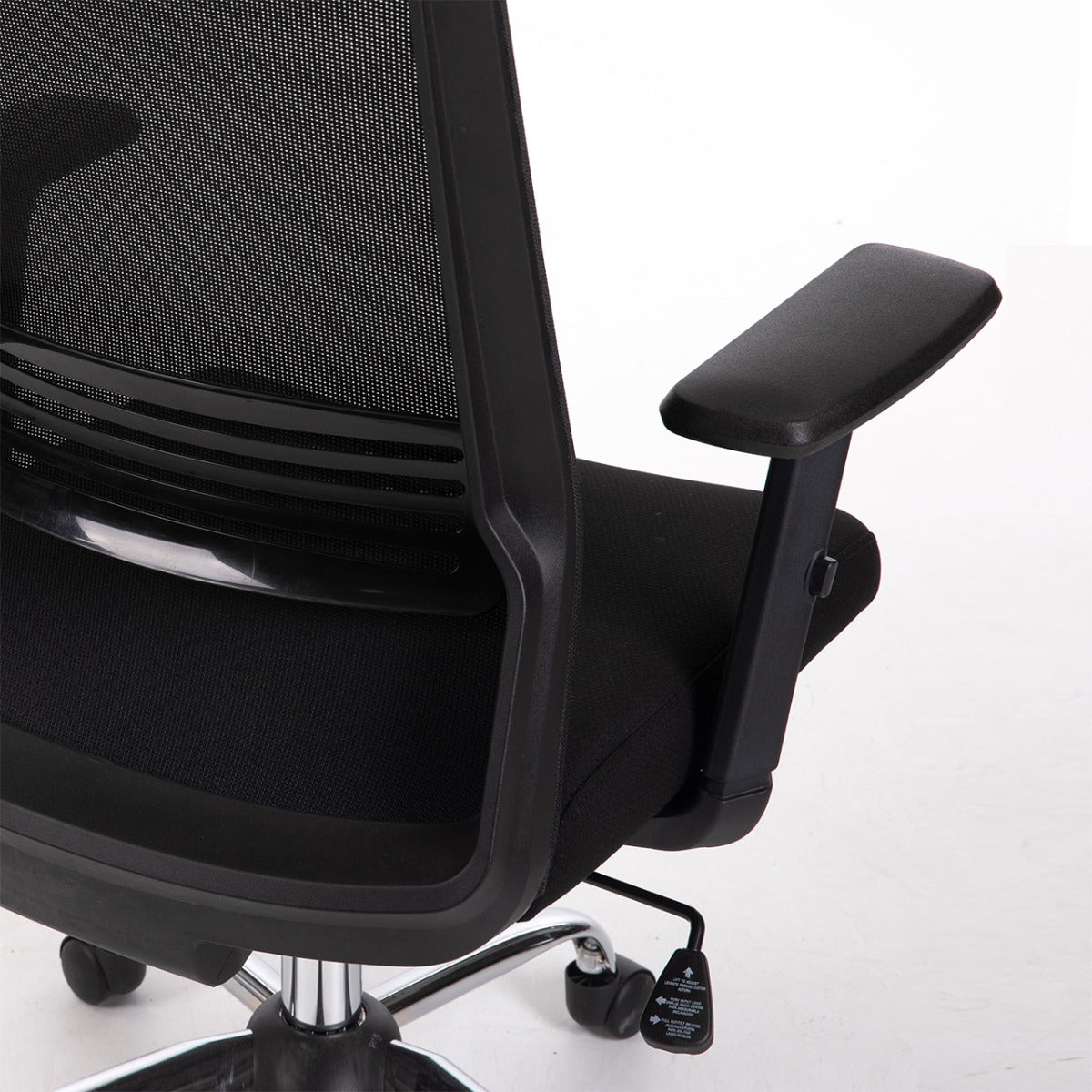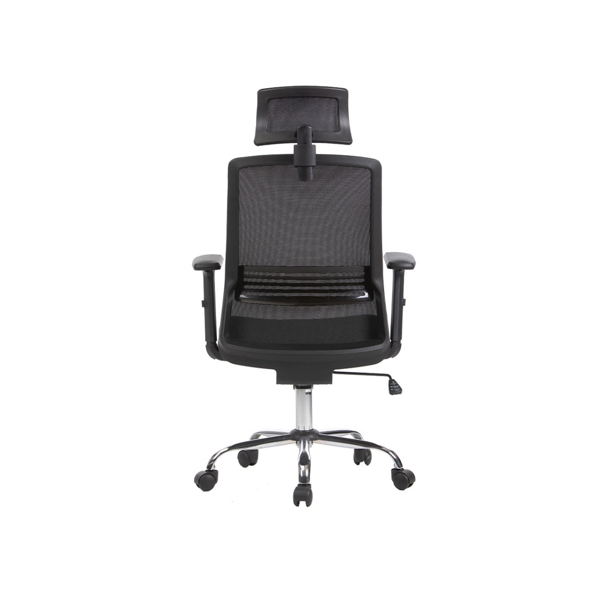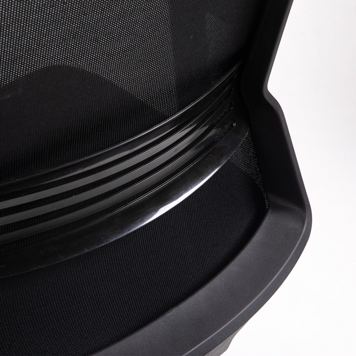 Material Estructura de polipropileno, asiento de espuma de alta densidad tapizado en malla, respaldo tapizado en malla, base metálica lacada, ruedas de nylon.