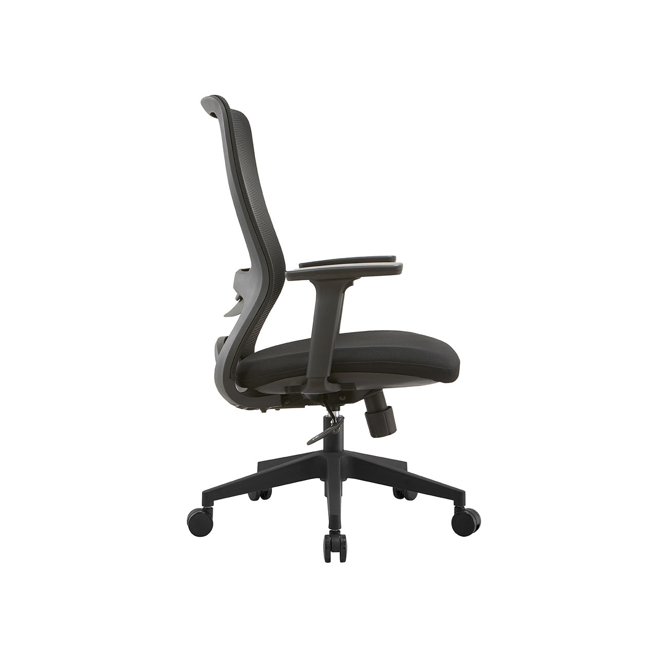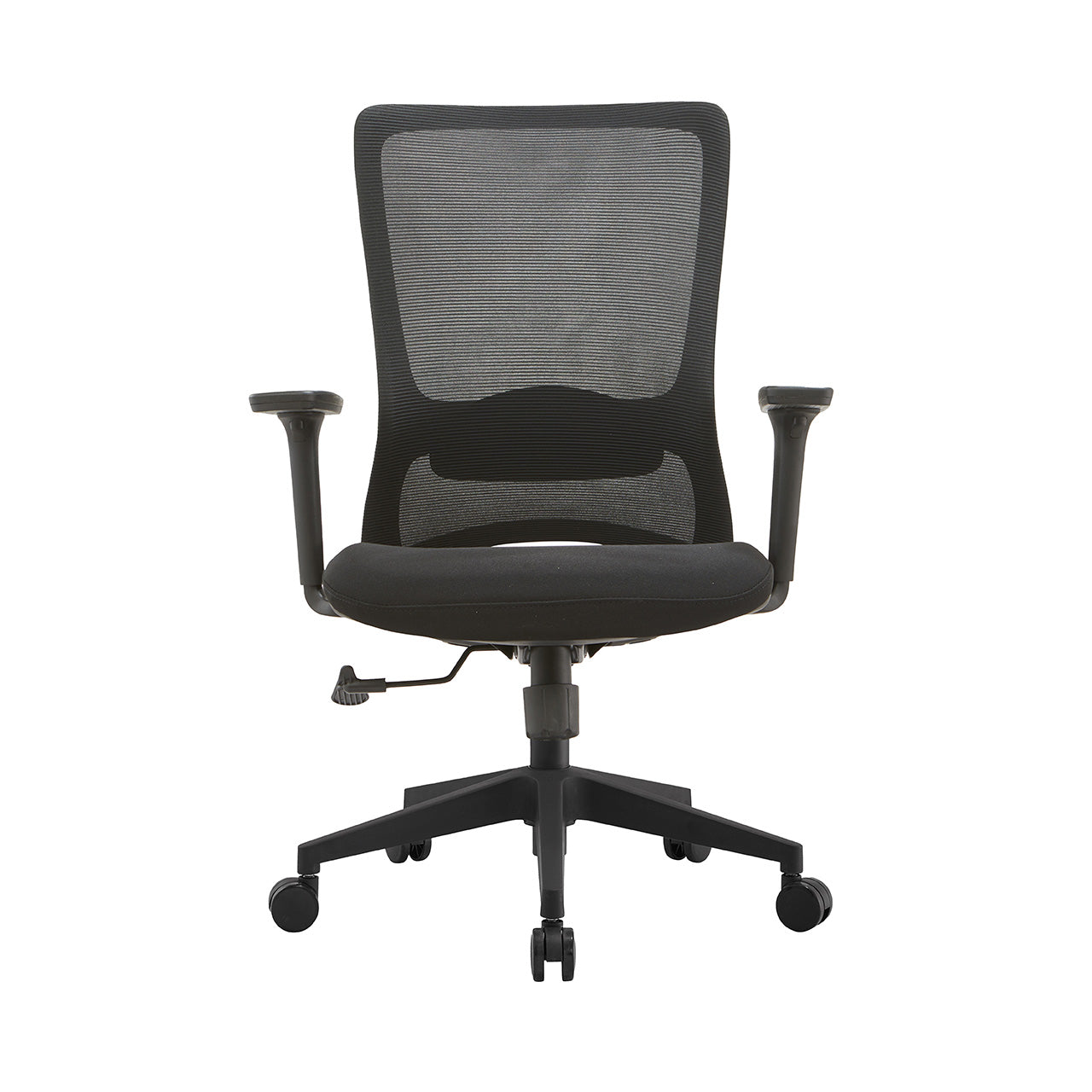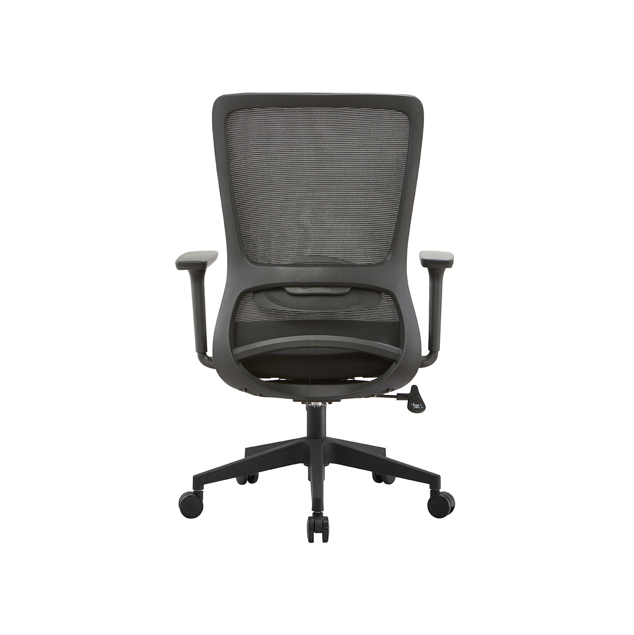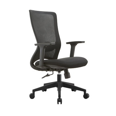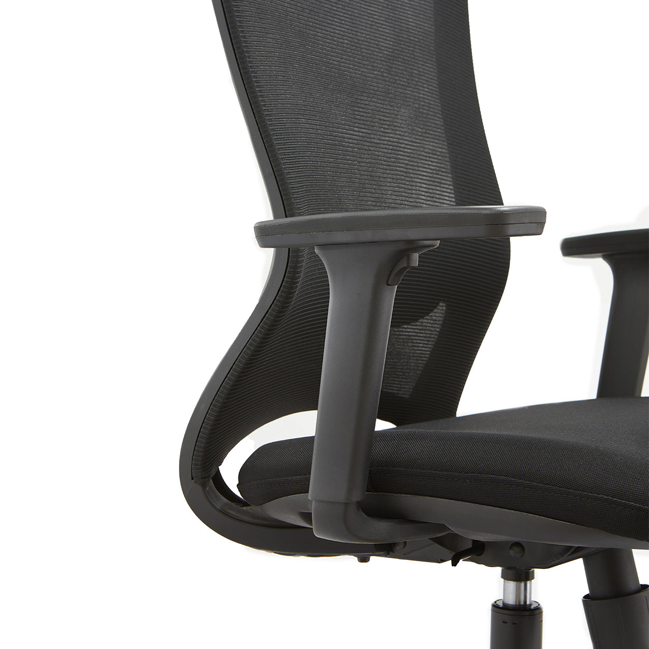 Material Silla ejecutiva con respaldo de nylon sólido y doble malla elástica. Apoyabrazos regulables con pad en PU Asiento con espuma de molde alta densidad con tela. Mecanismo de inclinación sincronizada con bloqueo trasero en 3 posiciones, altura y tensión de inclinación ajustable. BIFMA STANDARD, Gaslift clase 3 con distancia de 100 mm, base de nylon BIFMA STANDARD de 320 mm con rueda nylon de 60 mm.
