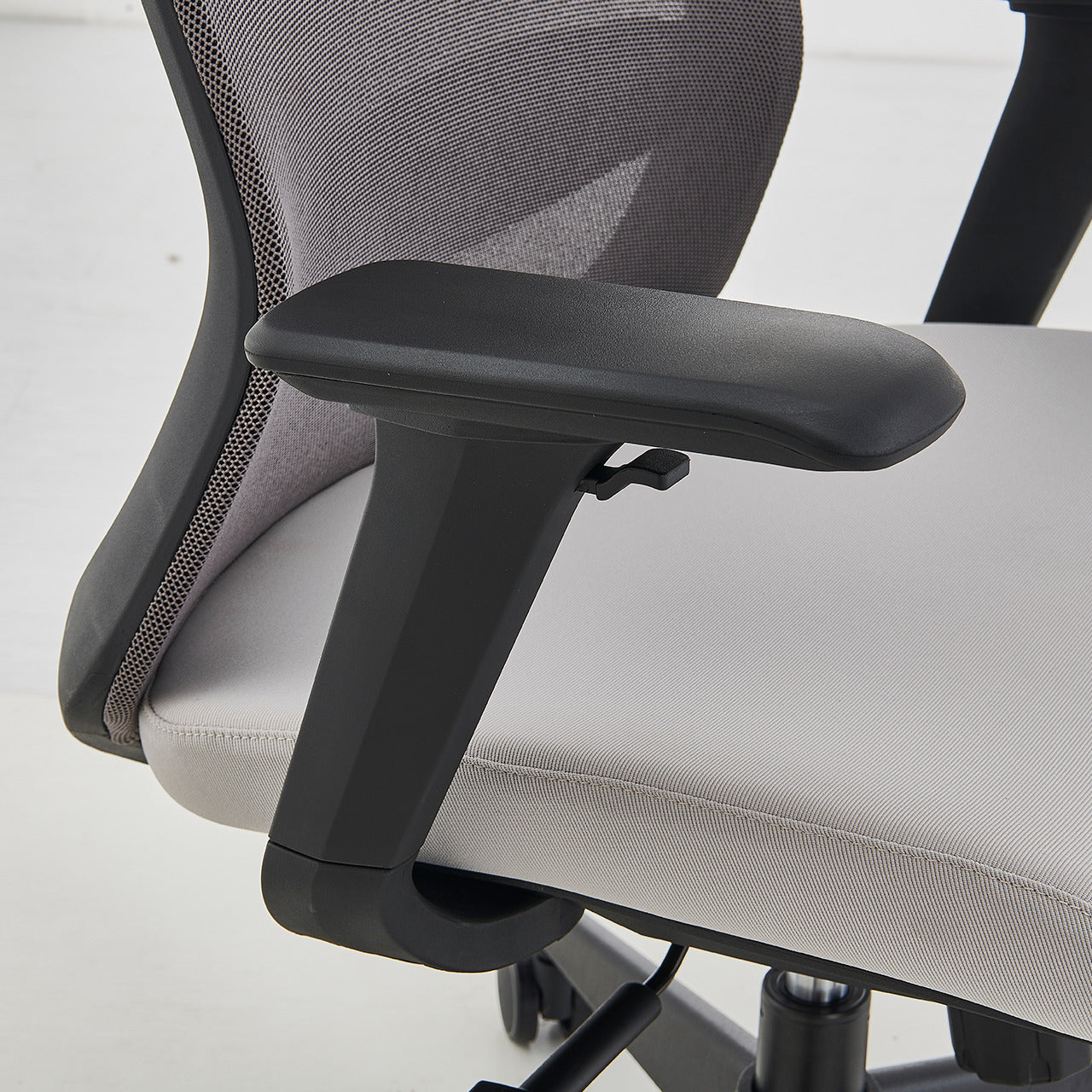 Material Silla ejecutiva con respaldo en malla reforzada y apoyo lumbar. Apoyabrazos regulables en altura 4D. Asientos con relleno de espuma de alta densidad y tapizados en tela de alto tráfico. Mecanismo de inclinación sincronizado con tres posiciones de bloqueo.