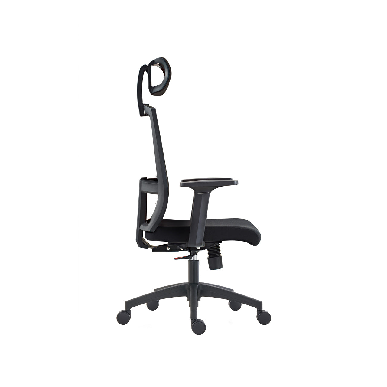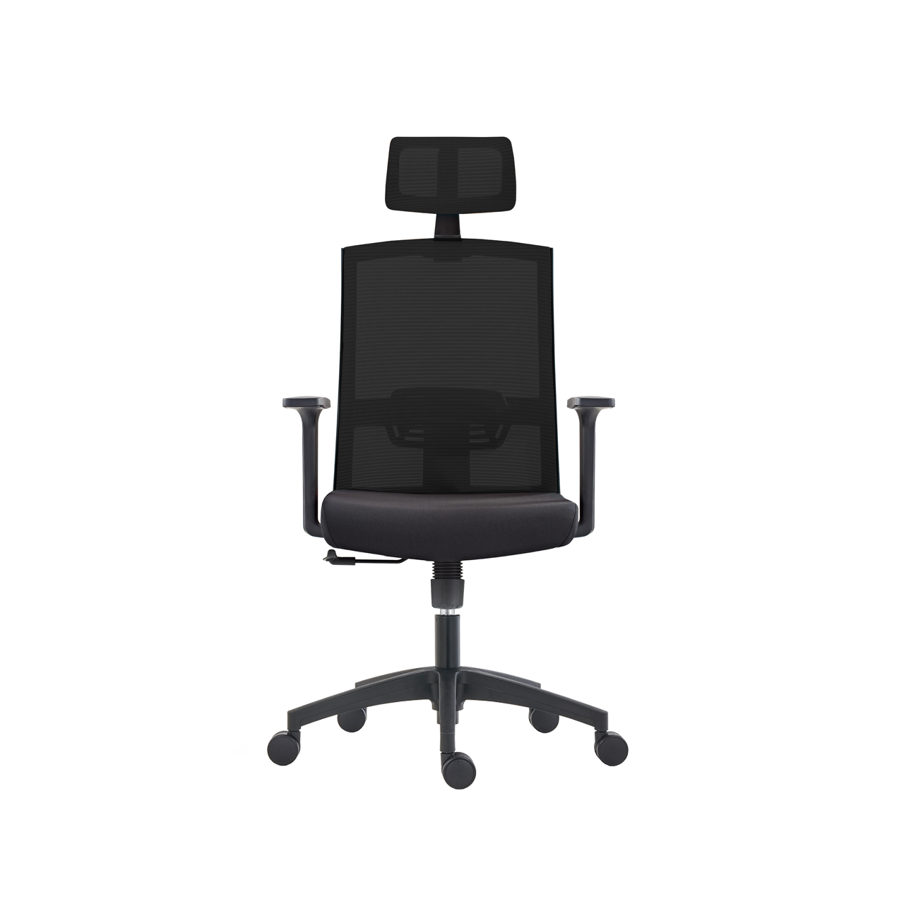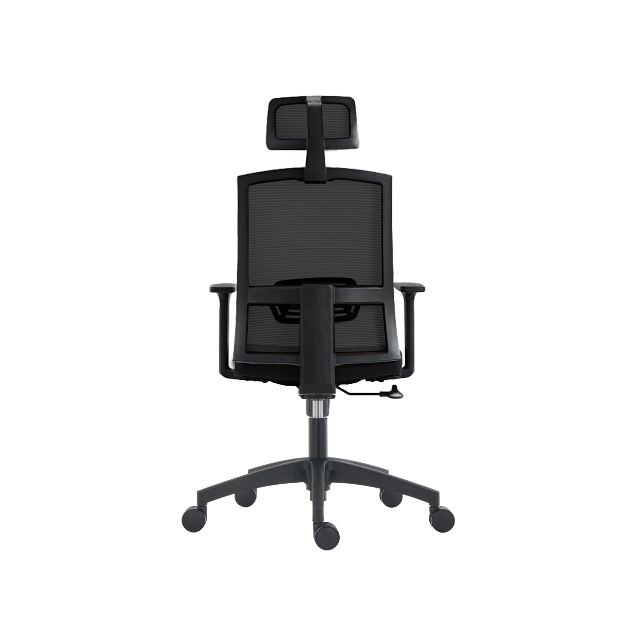 Material Silla ejecutiva con respaldo malla doble. Cuenta con espuma de molde de alta densidad con tela, apoyabrazos ajustables en altura con almohadilla de PU. Tiene un mecanismo de inclinación sincronizada con bloqueo hacia atrás en 1 posición con altura y tensión de inclinación ajustable. BIFMA ESTÁNDAR, Gaslift clase 3 con distancia de 100 mm, base de nylon BIFMA STANDARD de 320 mm con rueda nylon de 60 mm. Cuenta con apoya cabezas.