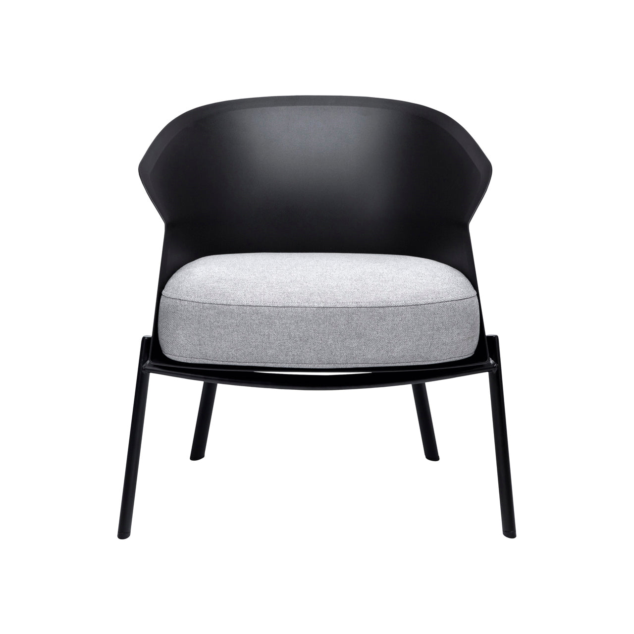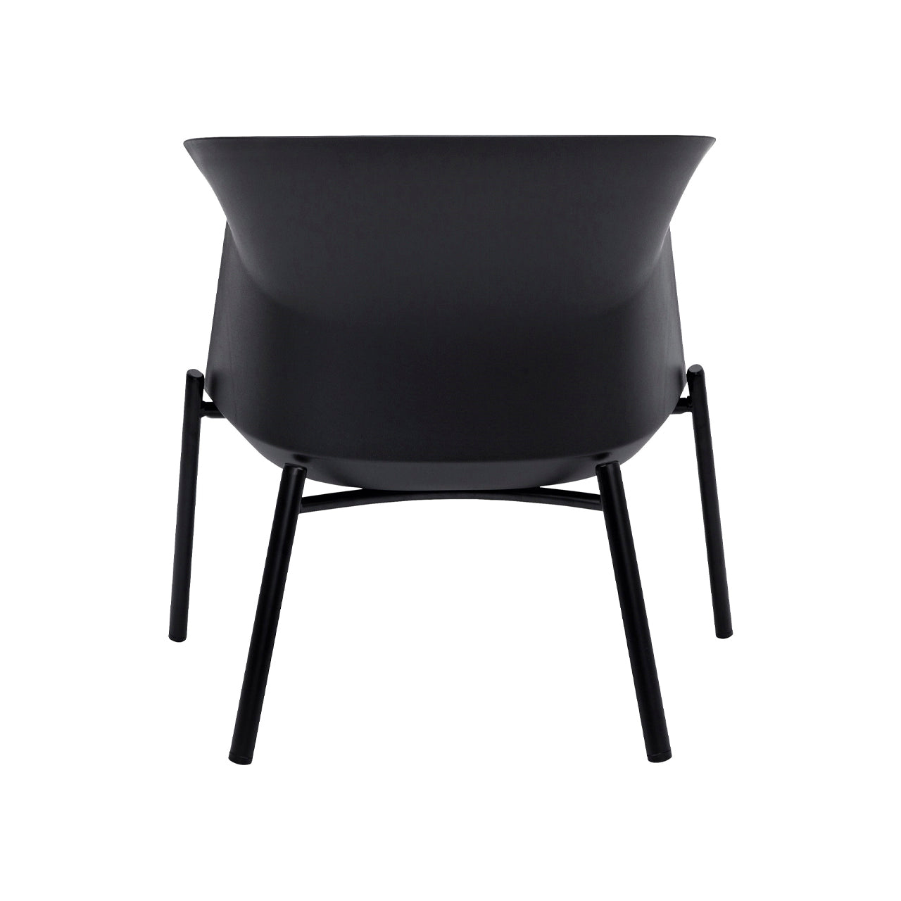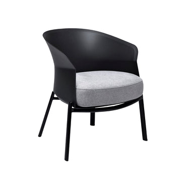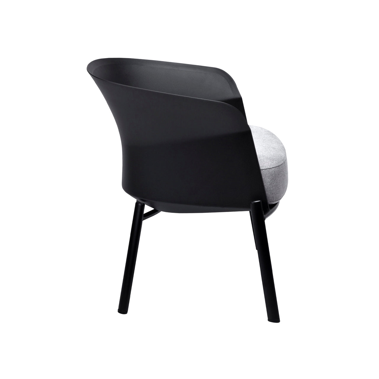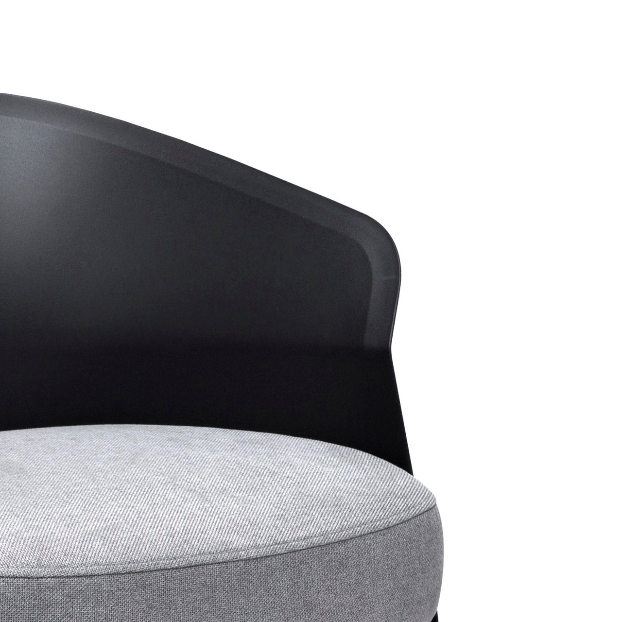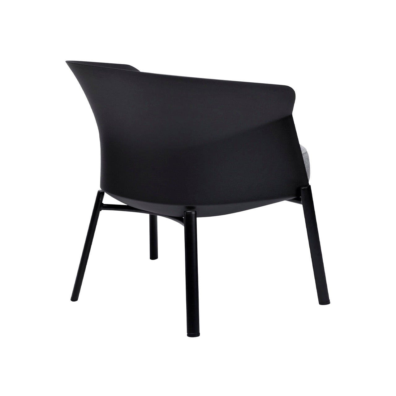 Material Base metálica pintada electroestáticamente color negro, respaldo de polipropileno inyectado color negro, asiento de espuma de alta densidad tapizado gris ceniza. Característica: producto contract.