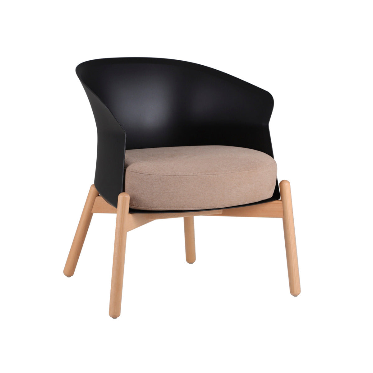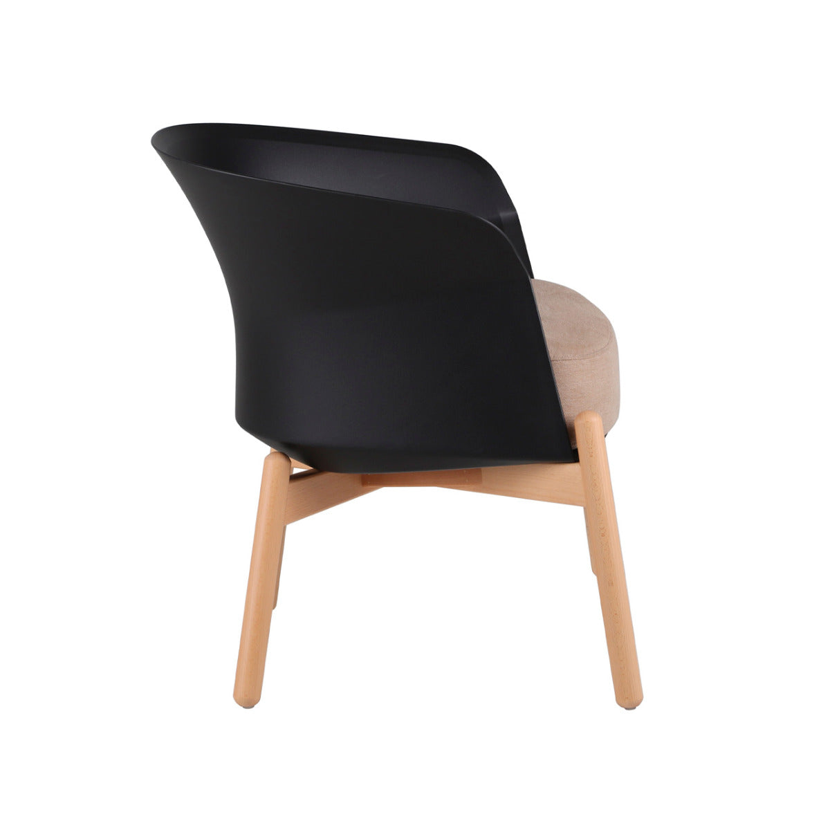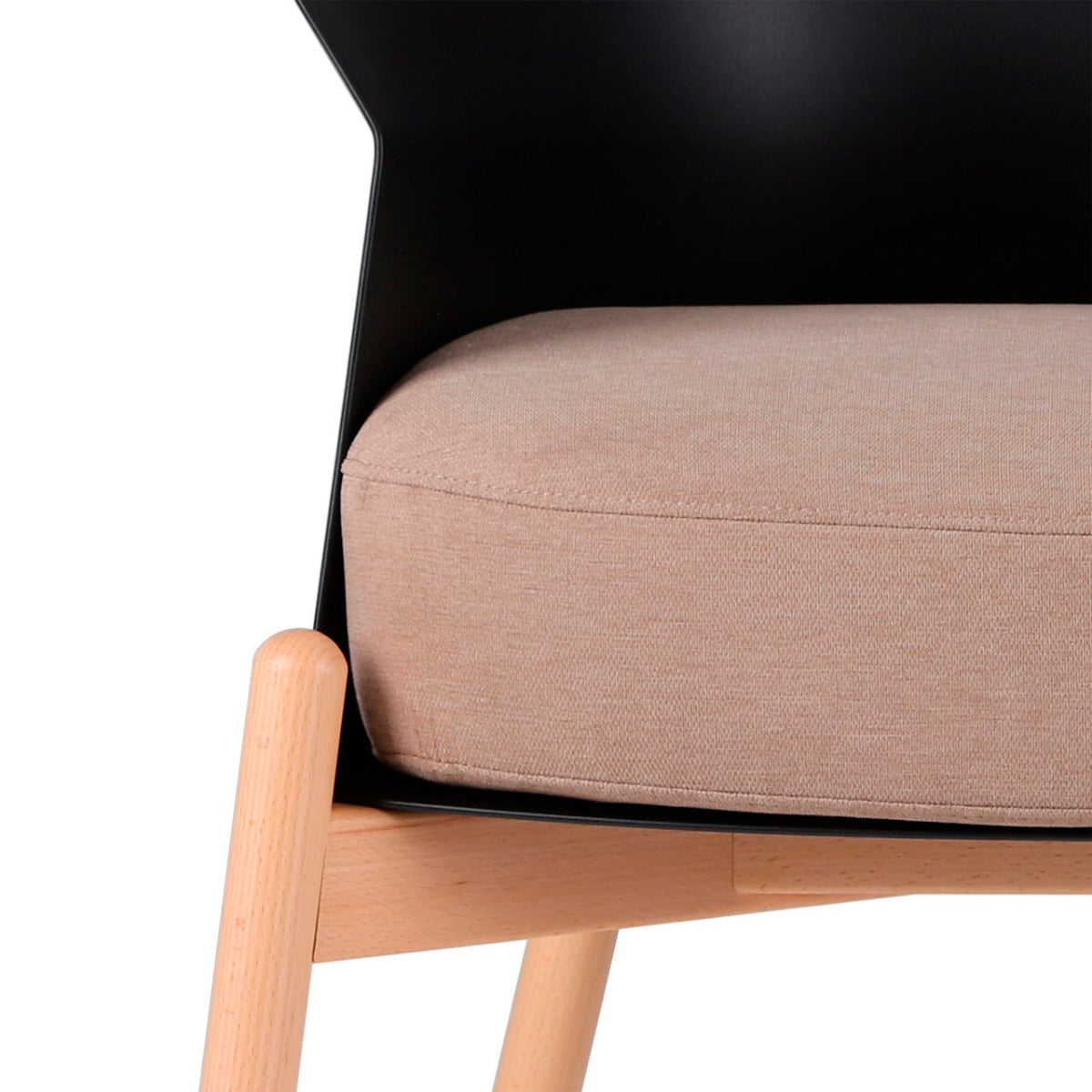 Material Estructura de madera sólida de haya, asiento de espuma de alta densidad tapizado, respaldo de polipropileno.