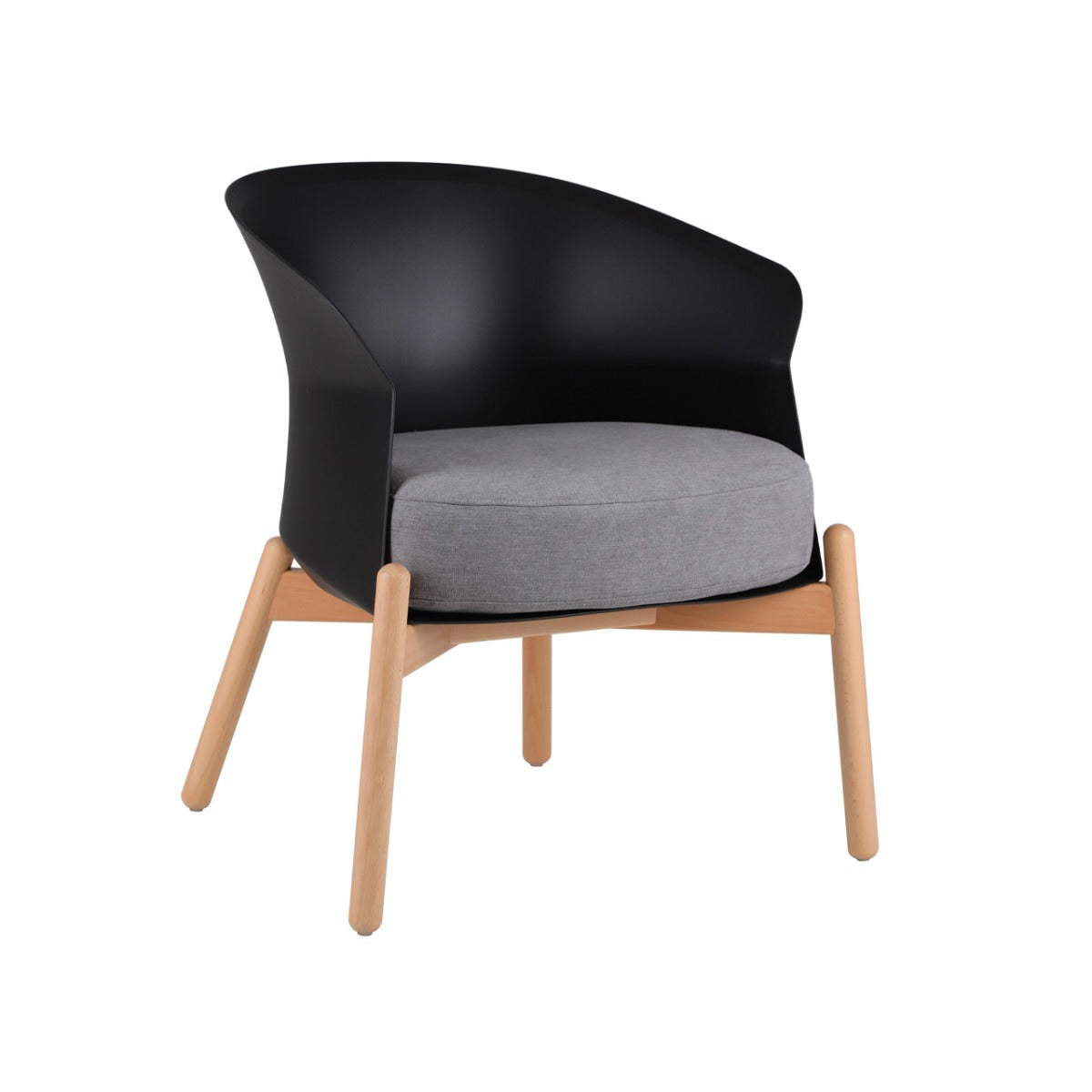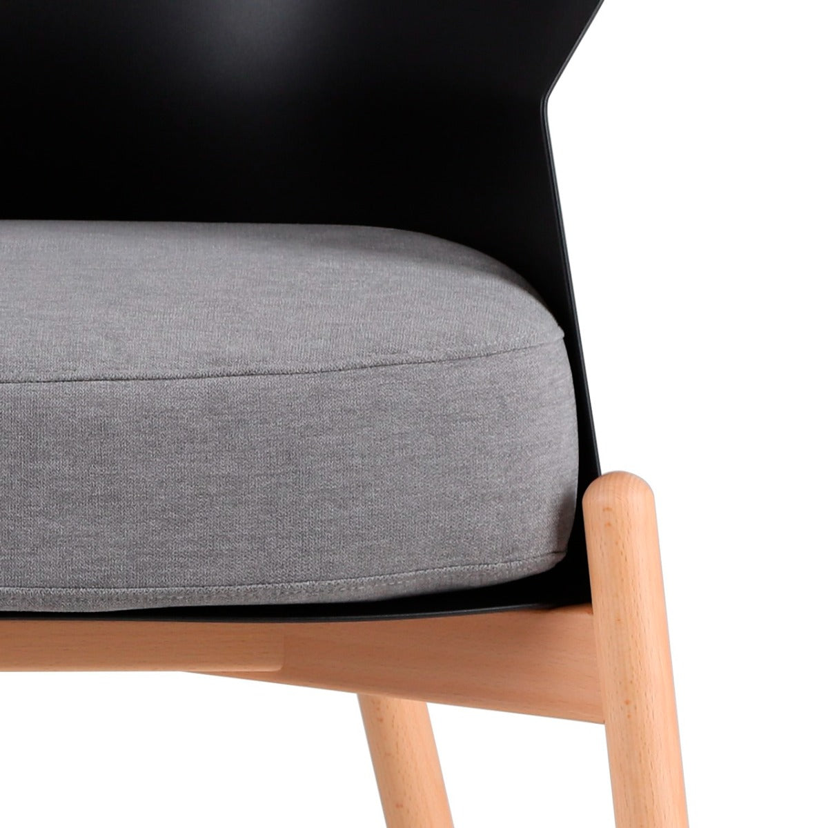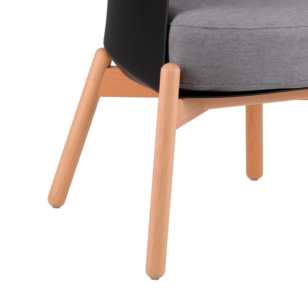 Material Estructura de madera sólida de haya, asiento de espuma de alta densidad tapizado, respaldo de polipropileno.