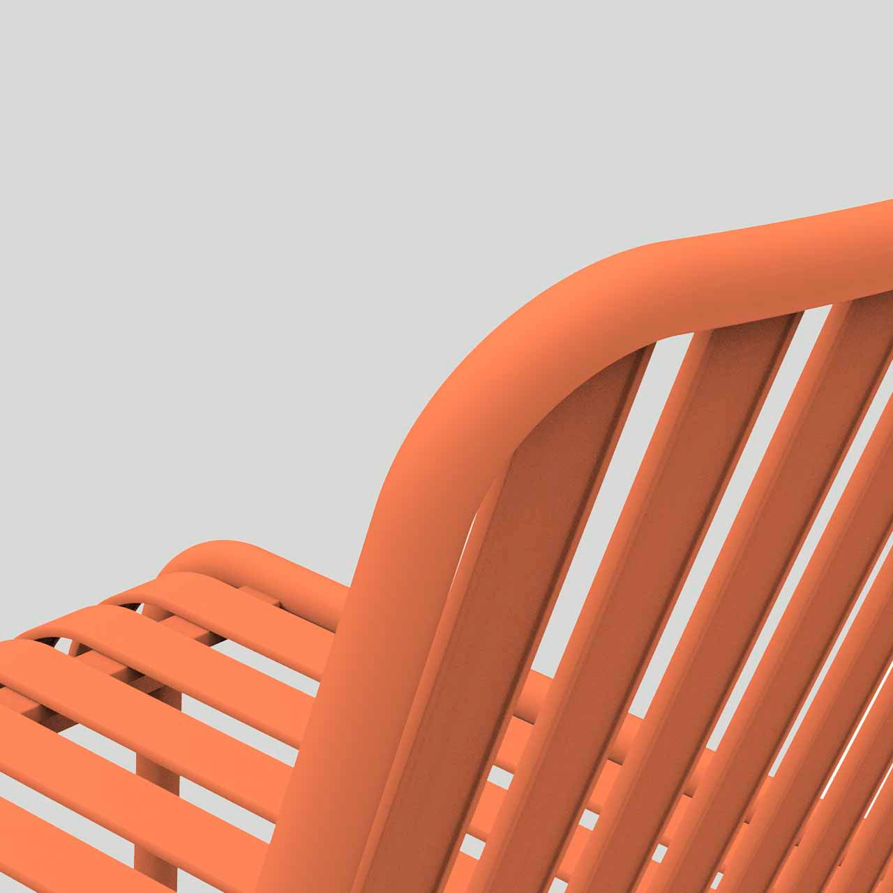 Material Estructura de tubo metálico lacado, asiento y respaldo matálico lacado.