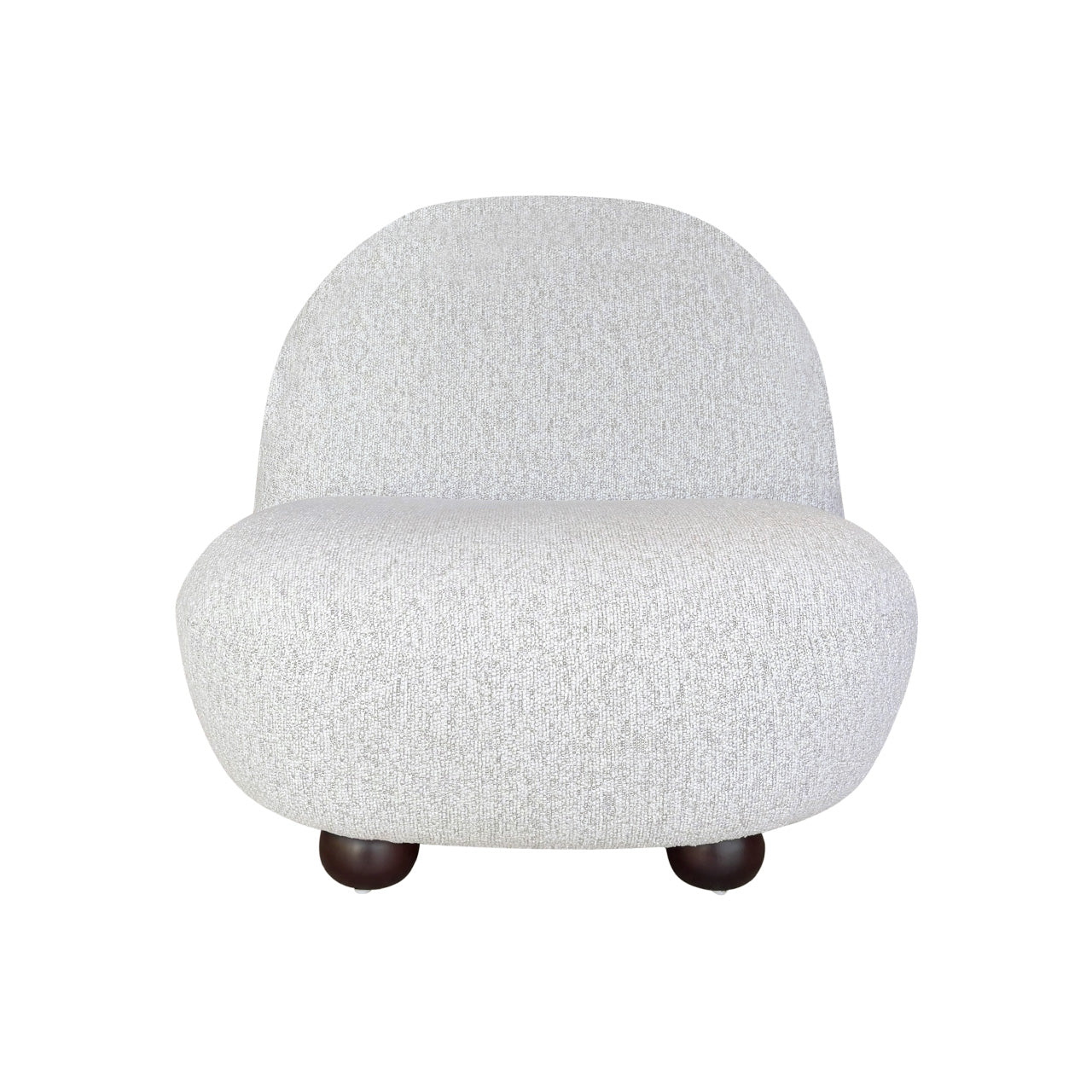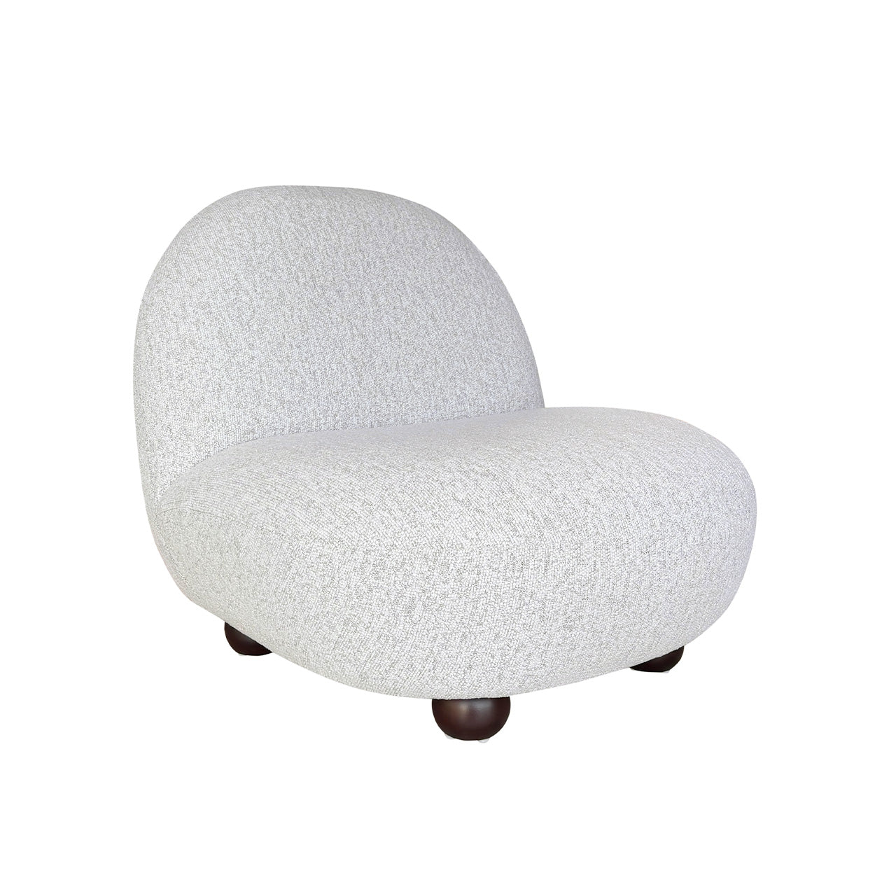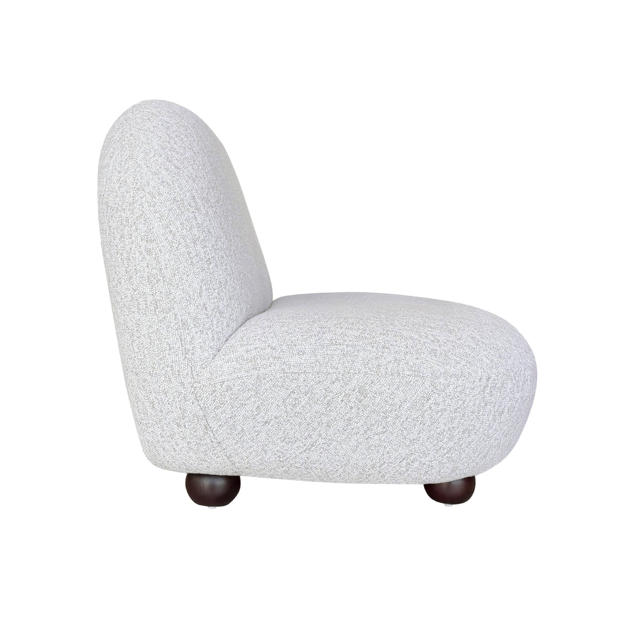 Sillón Copacabana en color gris jaspeado con patas redondas de madera en color nogal.