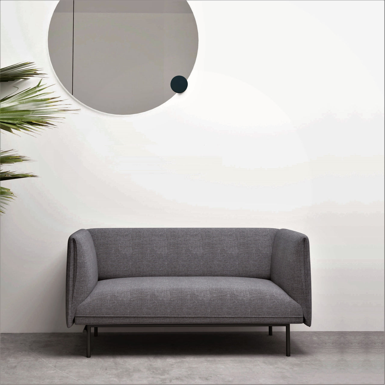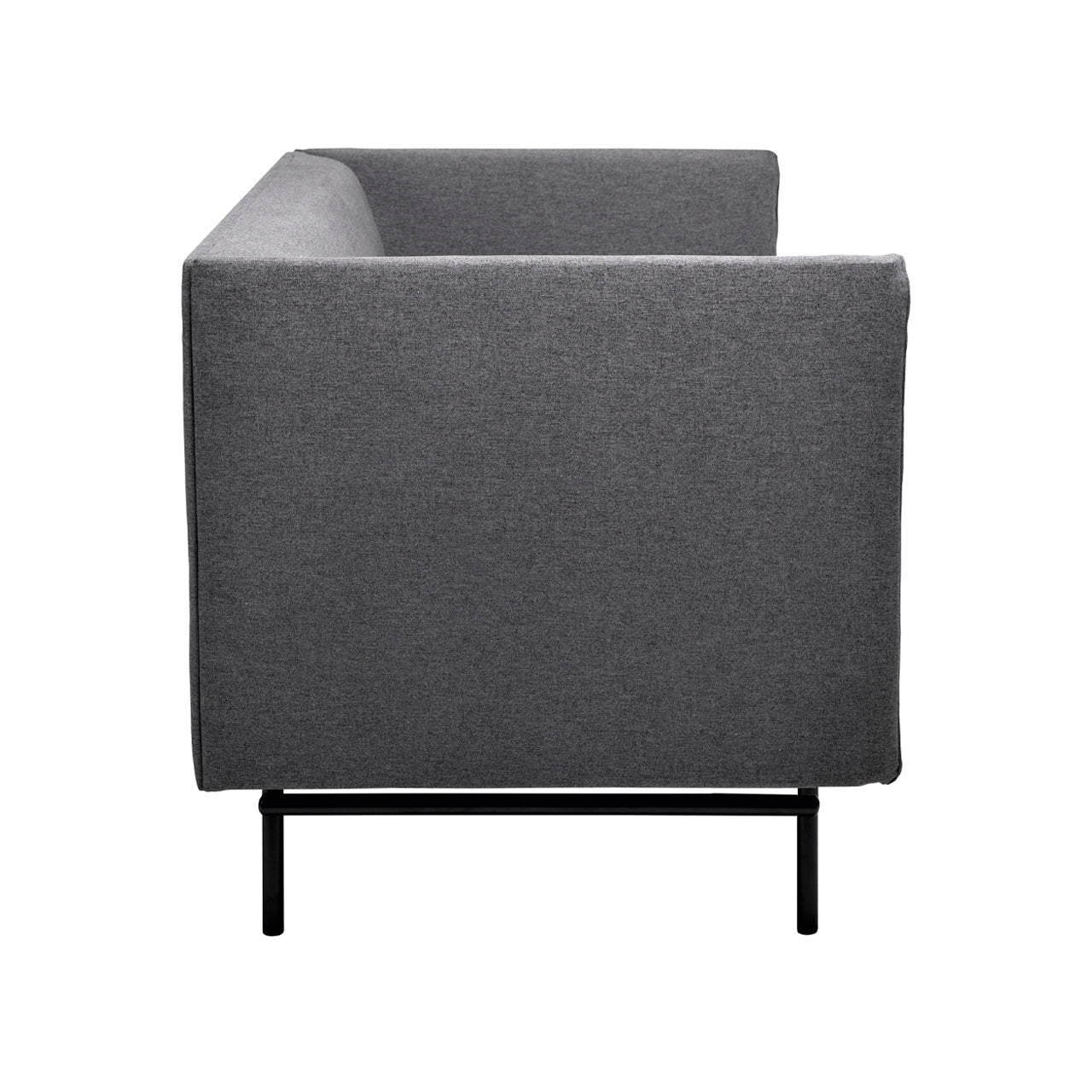 Material Estructura de madera de álamo, espuma de alta densidad tapizado, patas de acero pintadas.Terminación: tapiz gris oscuro - patas negras.