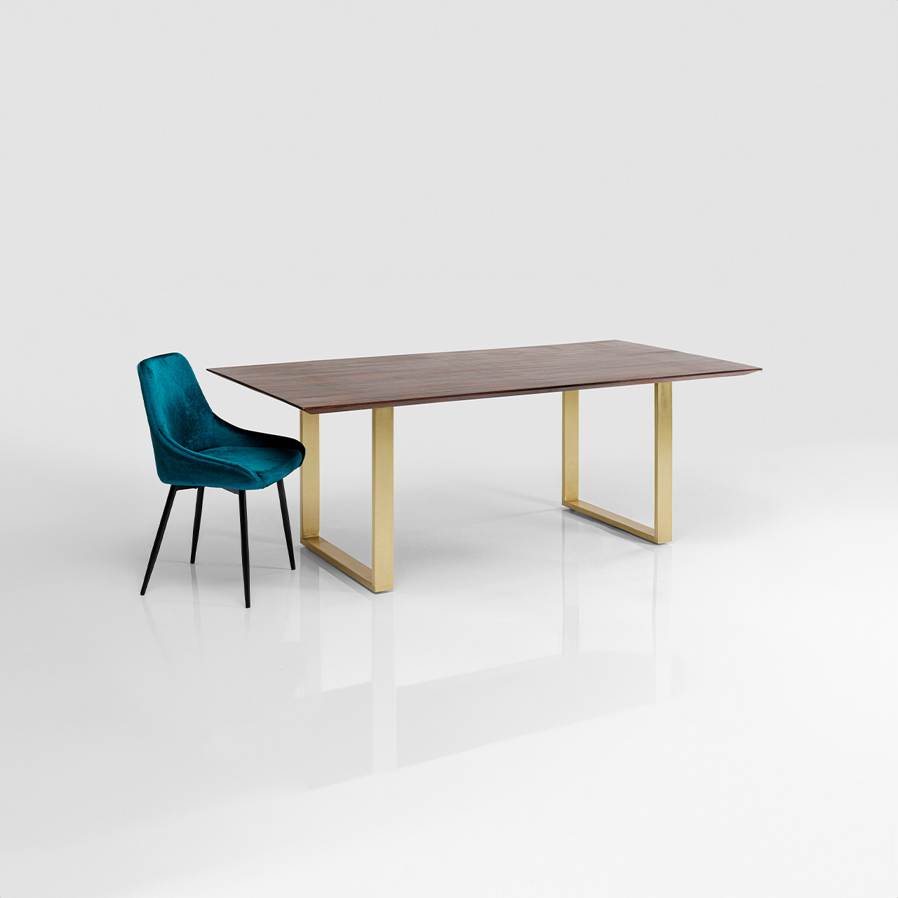 Cubierta acacia madera maciza barnizado, Patas: acero recubierto de latón. Hecho a mano.