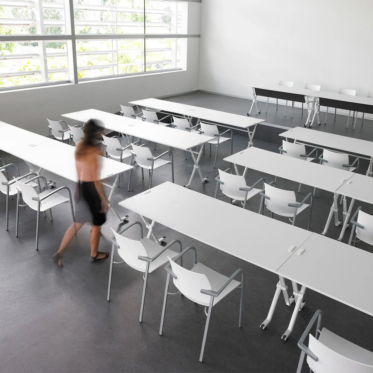 silla visita bio celeste y gris claro con patas cromadas, ideal para salas de espera.