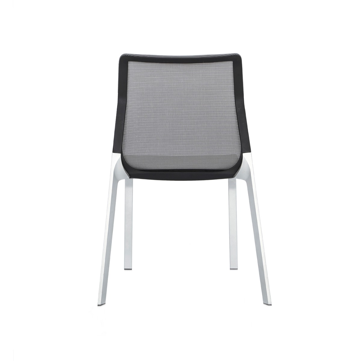 Estructura metálica, fabricada en aluminio recubierto con protección en patas con soporte de nylon color negro para deslizamientos. Respaldo en malla 2d color negro, sensación flexible. Marco de asiento en nylon de pieza única, cojín para comodidad adicional. Ranuras de ventilación en carcasa.