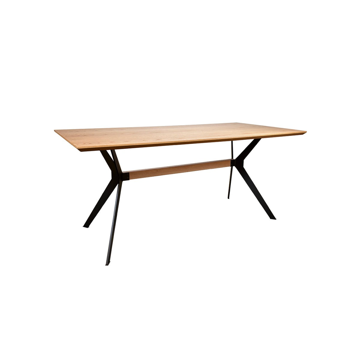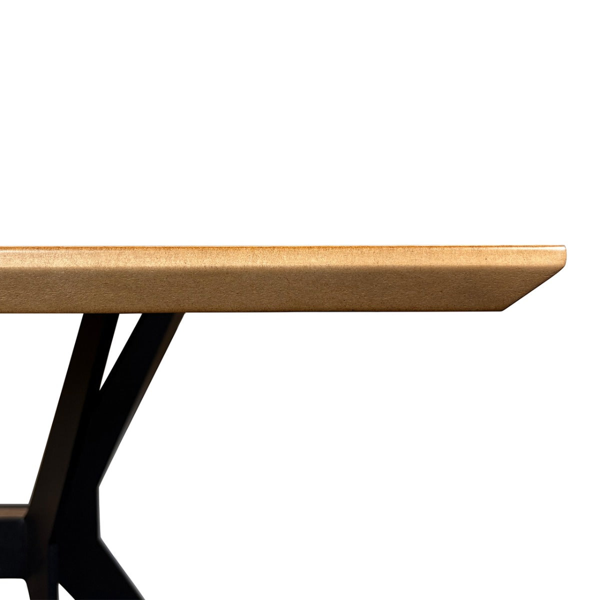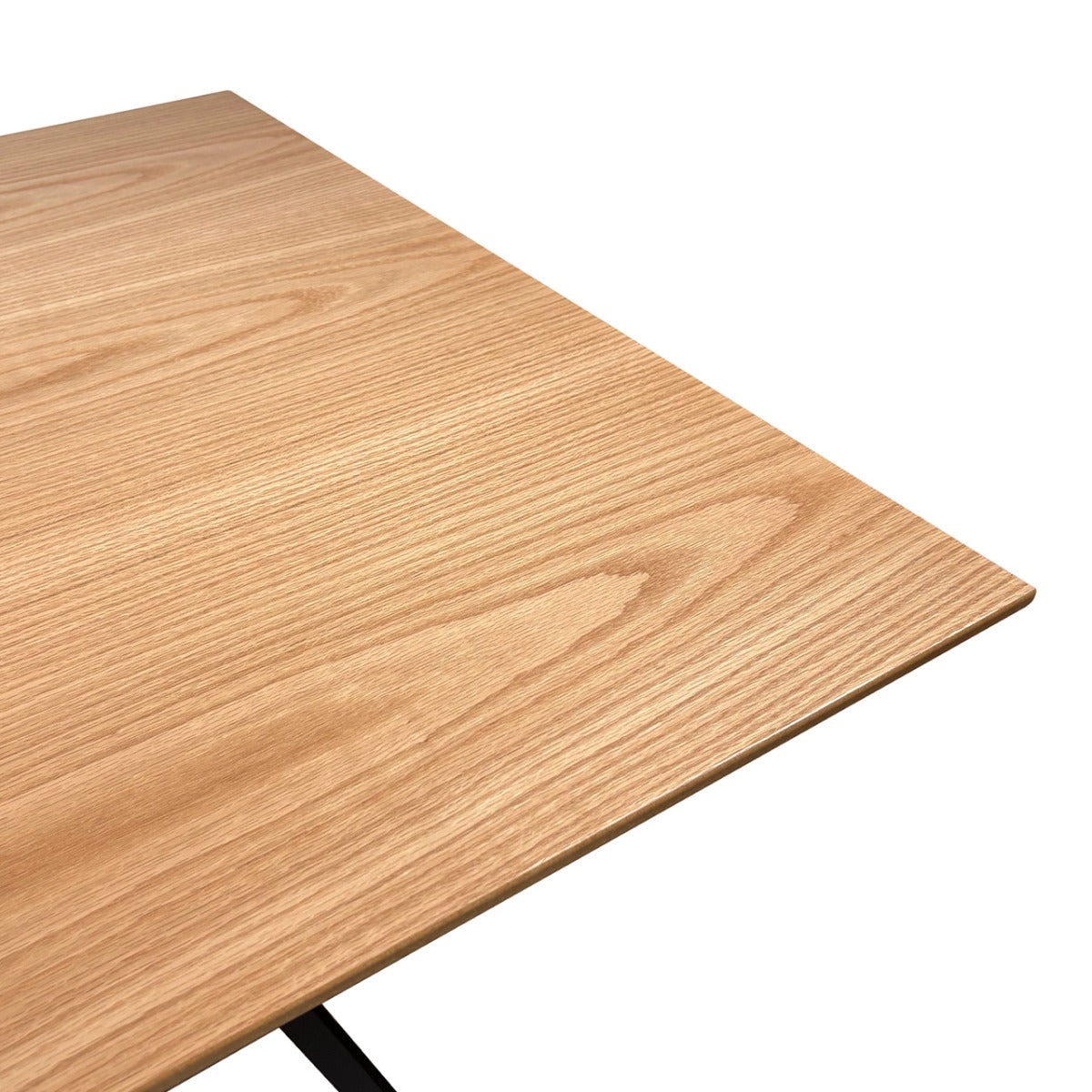 Material Base metálica lacada al horno, cubierta de enchapado madera encina roja y travesaño en madera solida de encina roja.