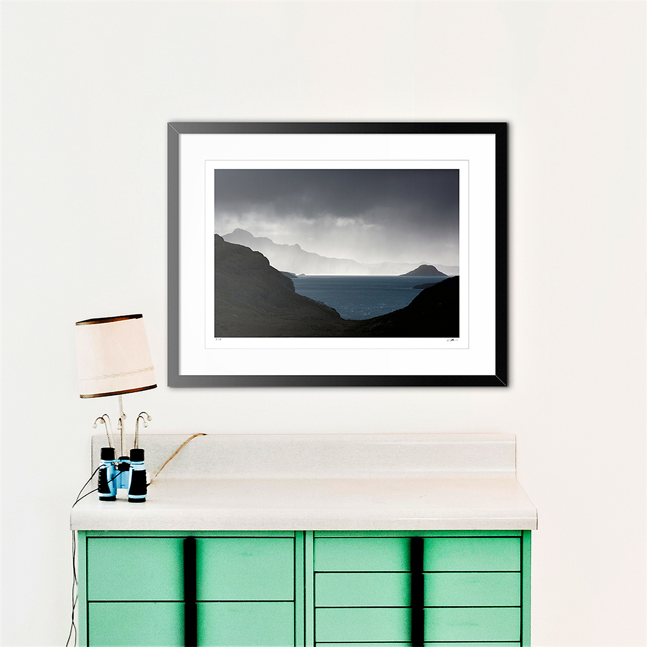 Impresión glicée en papel, marco de moldura lacada y vidrio.